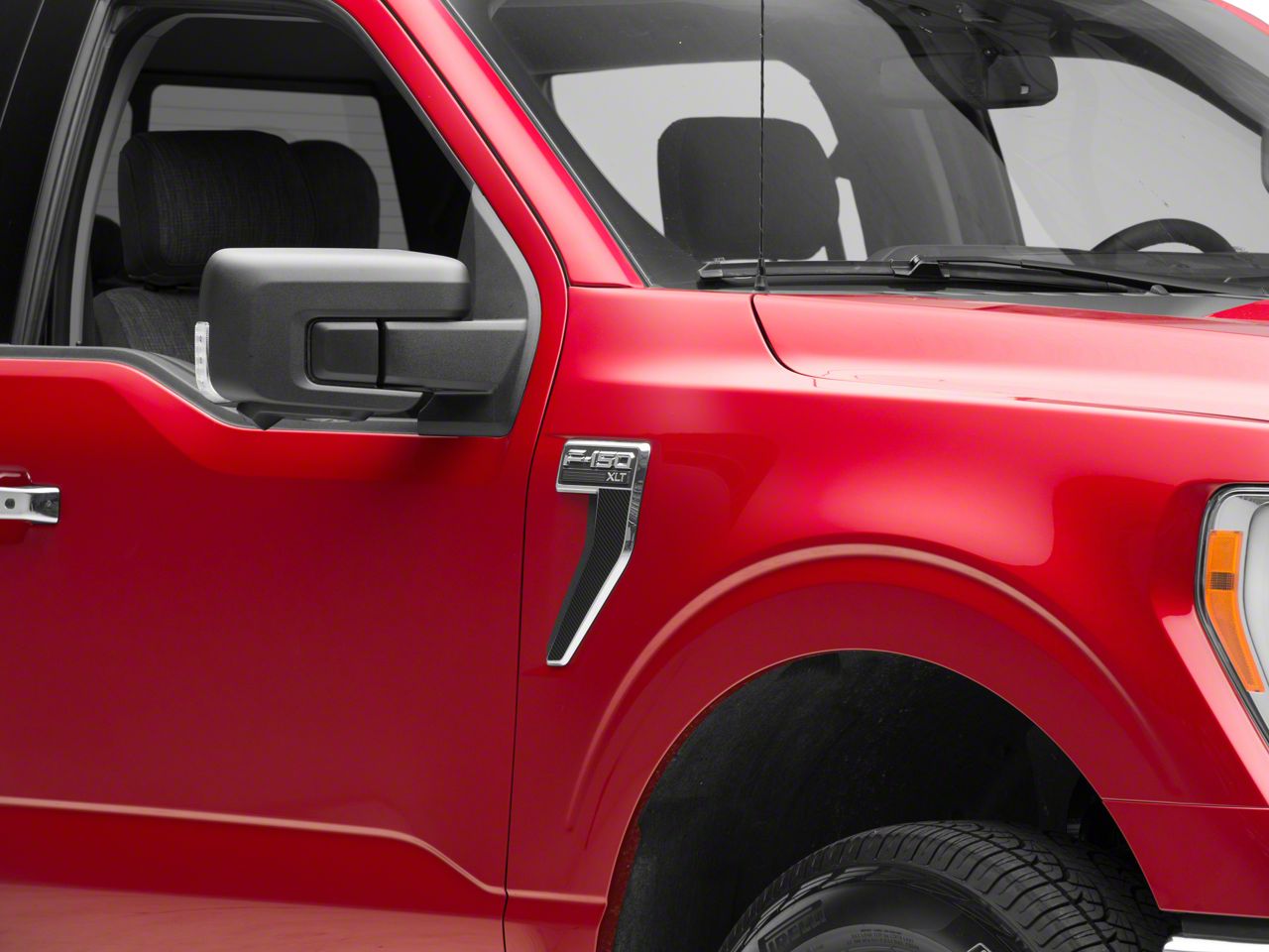 Complementary Styling. A set of Carbon Fiber Style SEC10 Front Fender Grille Accent Decals will enhance the exterior styling of your 2021-2026 Ford F-150. These great looking Decals are an easy way to complement the look of the factory vents found on the front fenders of the F-150.