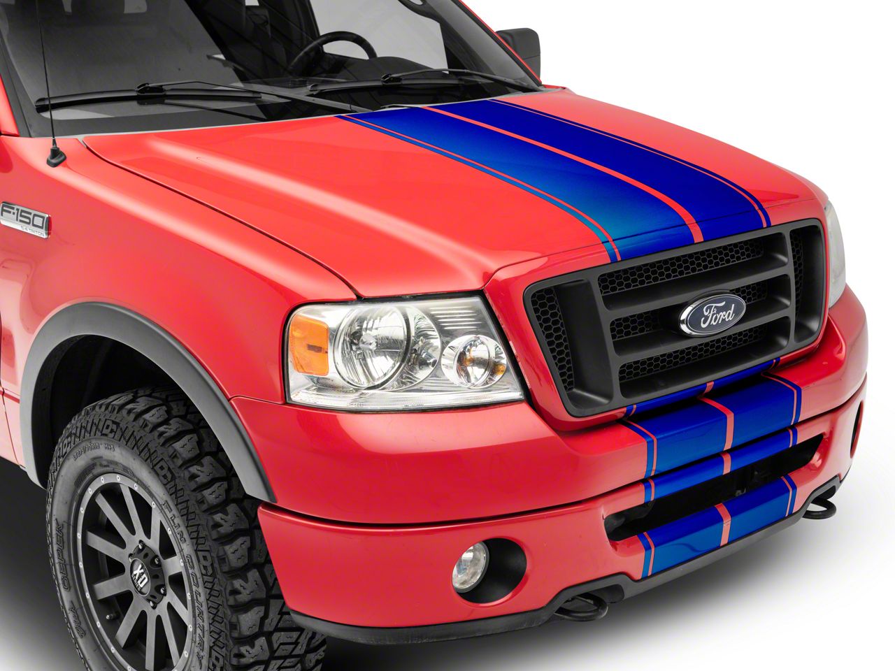 Application. These SEC10 Full Length Stripes; Blue are designed to fit 2004-2008 Ford F-150 models.