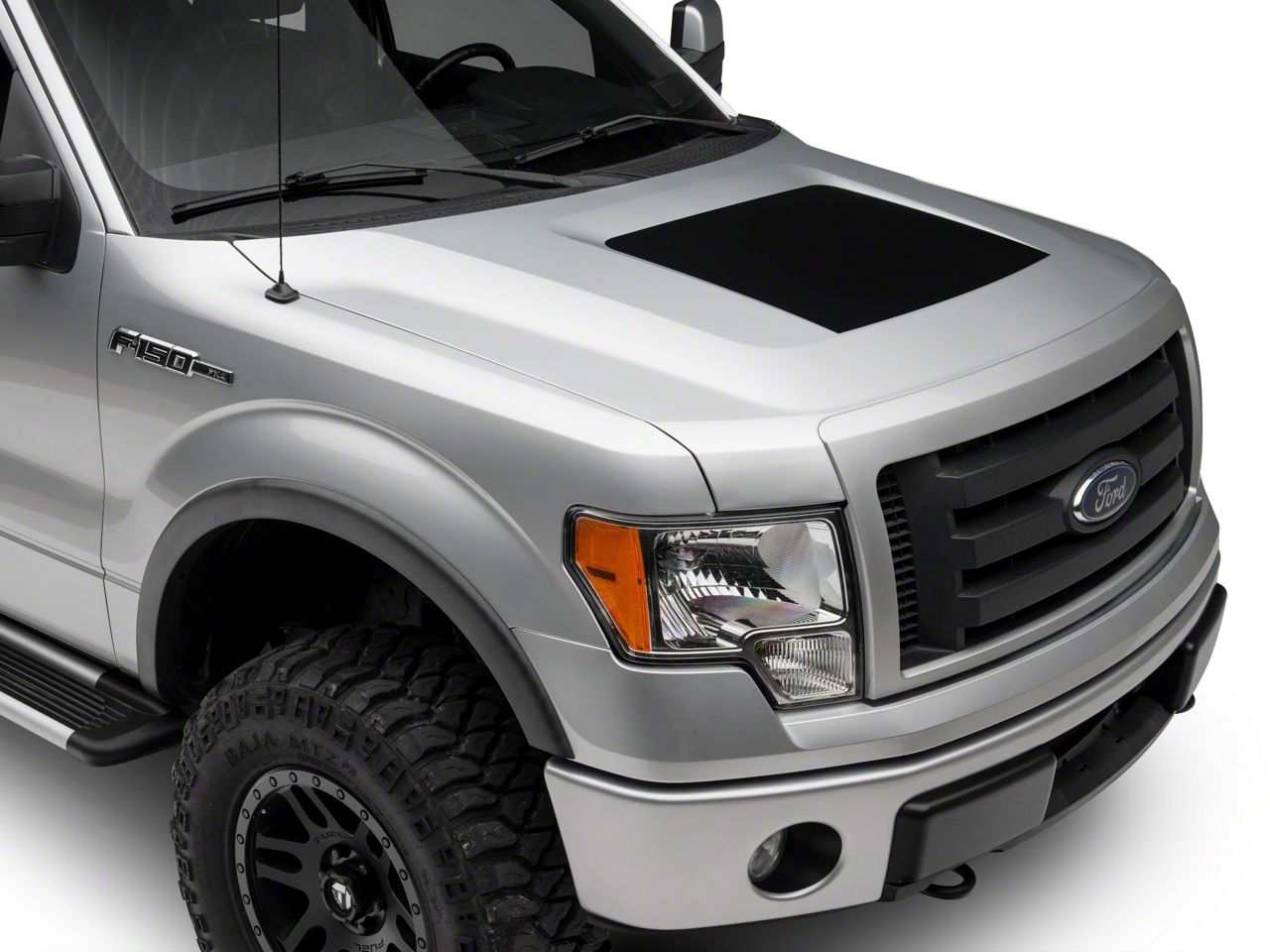 Powerful Styling. Add bold powerful styling to your 2009-2014 Ford F-150 with this great looking Hood Decal. This SEC10 Vinyl Decal is applied to the center valley of your F-150's factory hood for a beefy, muscular appearance. This Hood Decal is also a great and inexpensive way to cover up cracked or scratched paint without a trip to the body shop.