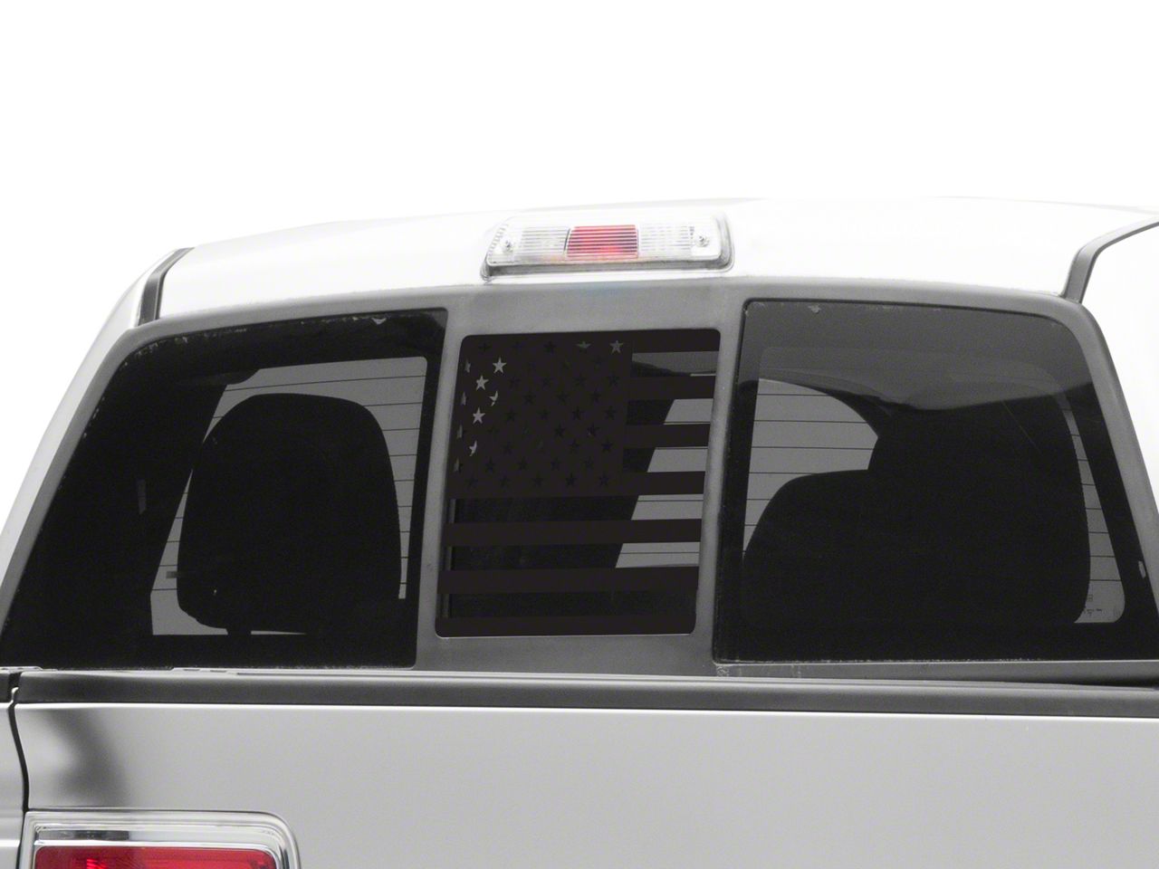 Application. This SEC10 Middle Window American Flag Decal is designed to fit 1997-2026 Ford F-150 models. Sold Individually. Please select your color from options listed.