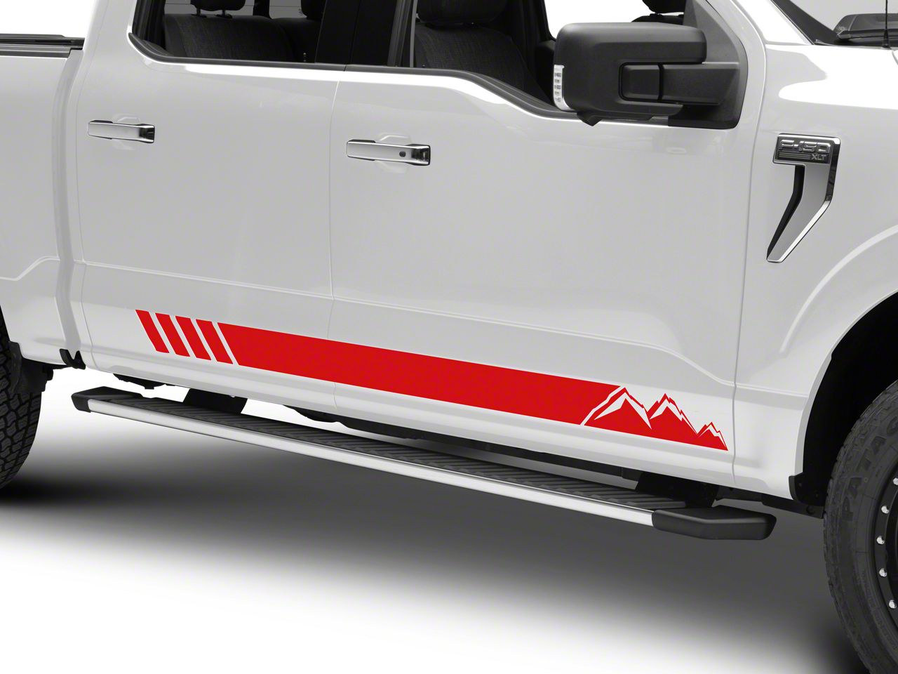 Application. These SEC10 Mountain Rocker Stripes; Red feature a universal designed and will fit all makes and models. Driver and passenger Side Included.