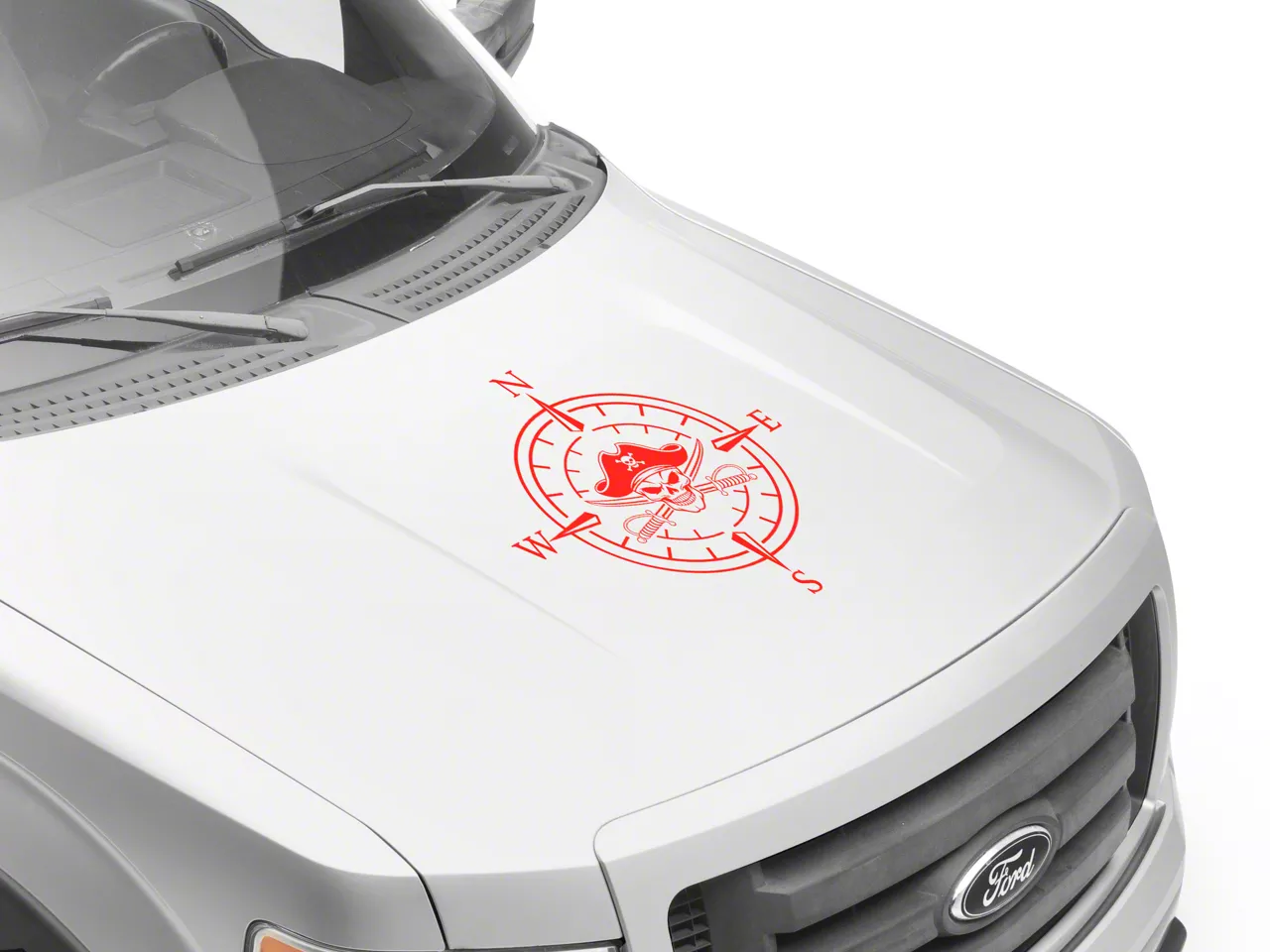Pirate Compass Hood Decal. A simple and inexpensive way to personalize the exterior styling of your vehicle is with a Pirate Compass Hood Decal from SEC10. This Hood Decal features a pirate skull within a four point compass design.