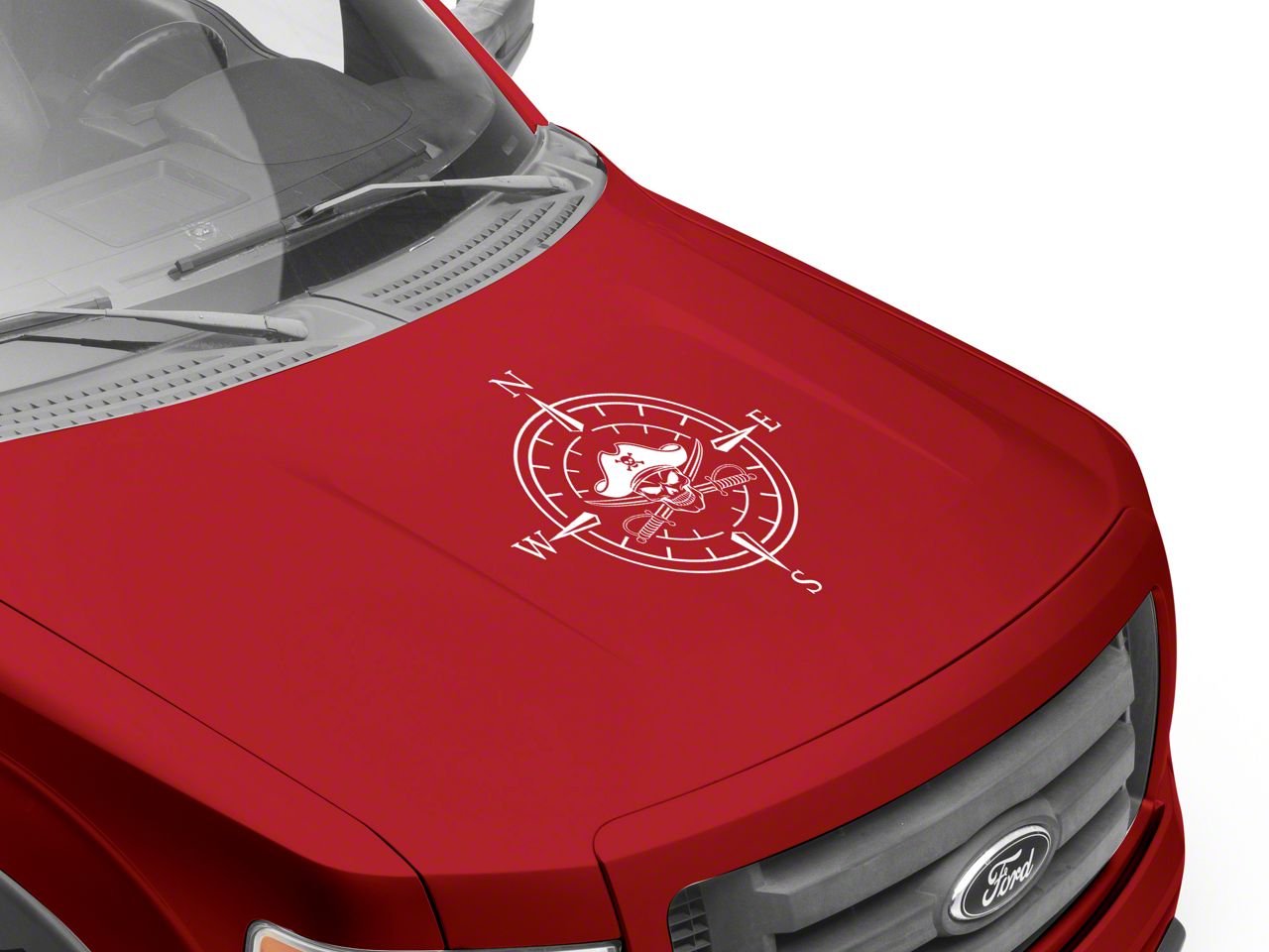 Pirate Compass Hood Decal. A simple and inexpensive way to personalize the exterior styling of your vehicle is with a Pirate Compass Hood Decal from SEC10. This Hood Decal features a pirate skull within a four point compass design.