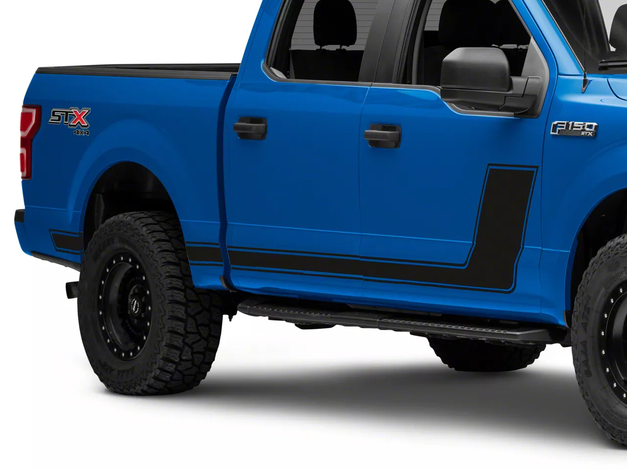Application. These SEC10 Side Graphic with Pinstripe; Black are designed to fit 1997-2026 Ford F-150 models.