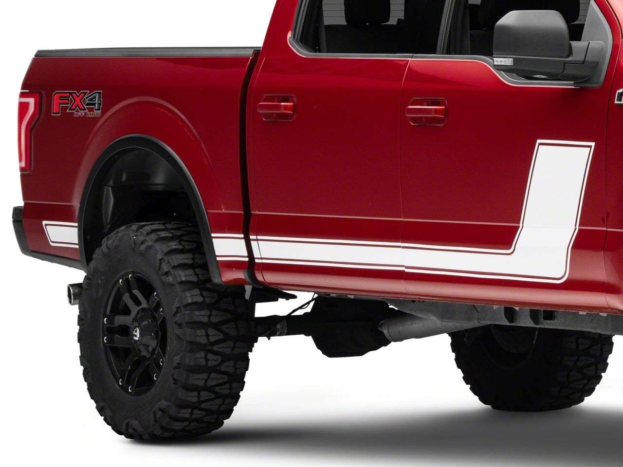Application. These SEC10 Side Graphic with Pinstripe; White are designed to fit 1997-2026 Ford F-150 models.