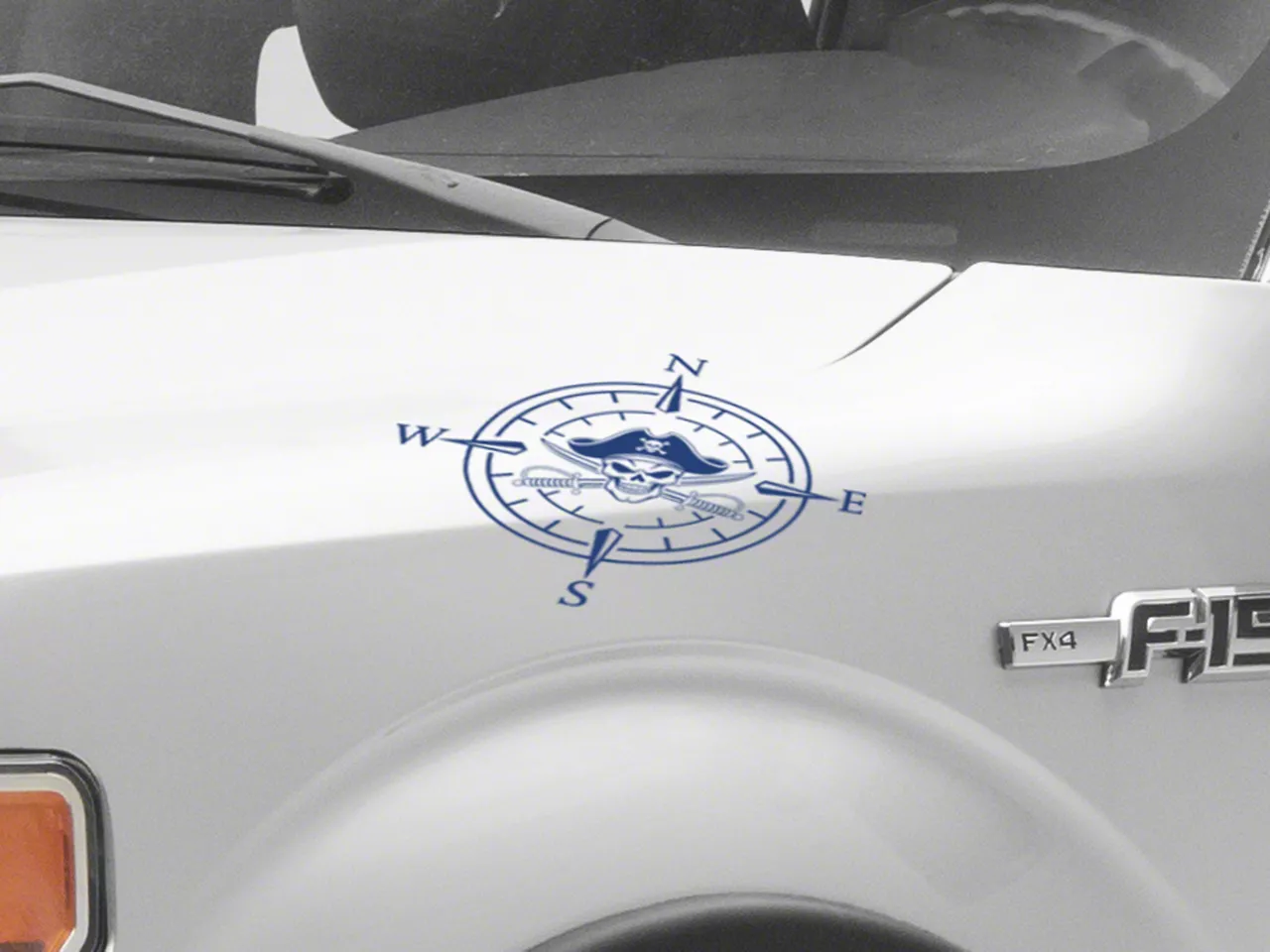 Pirate Compass Hood Decal. A simple and inexpensive way to personalize the exterior styling of your vehicle is with a Pirate Compass Hood Decal from SEC10. This Hood Decal features a pirate skull within a four point compass design.