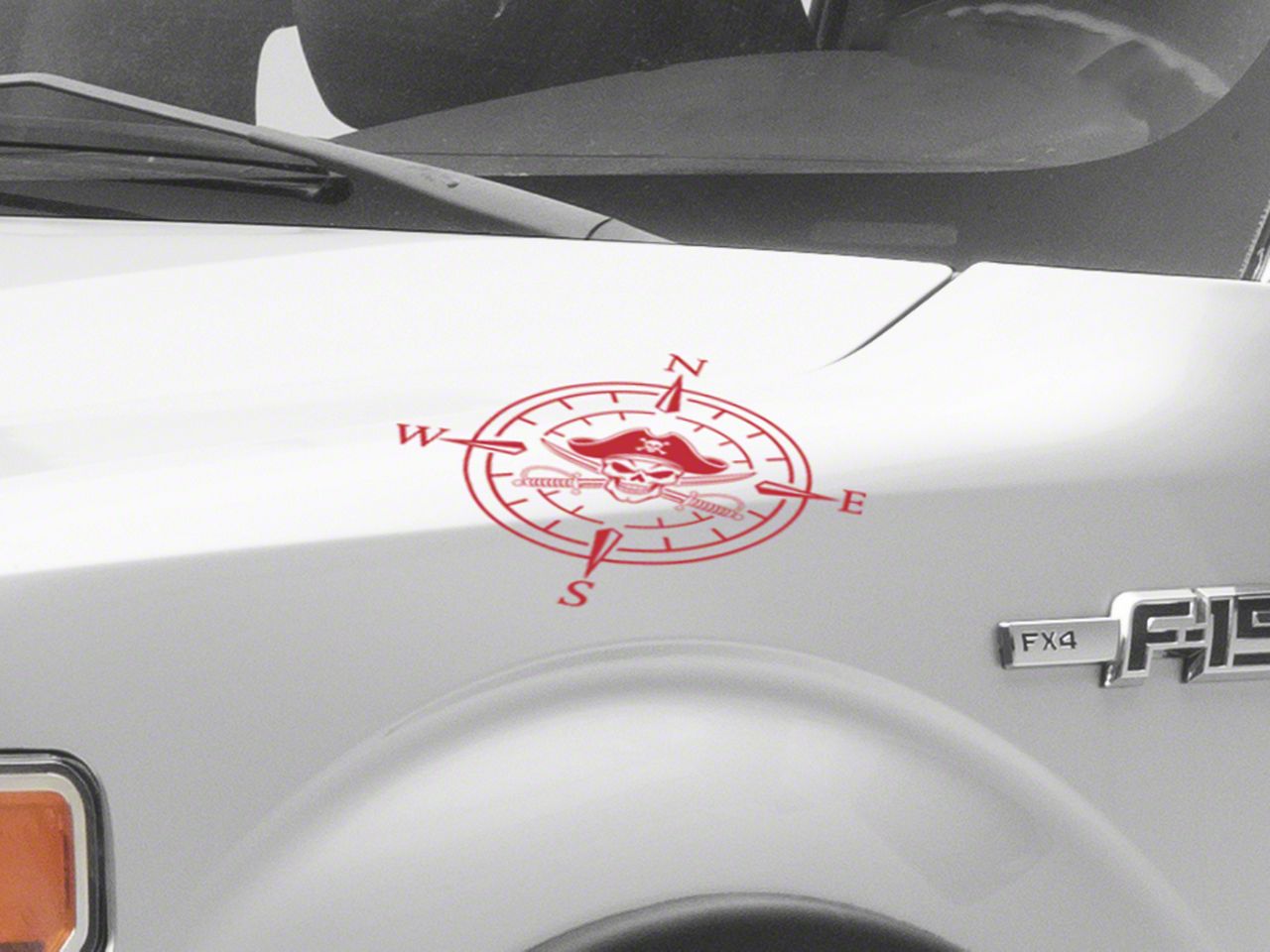 Pirate Compass Hood Decal. A simple and inexpensive way to personalize the exterior styling of your vehicle is with a Pirate Compass Hood Decal from SEC10. This Hood Decal features a pirate skull within a four point compass design.