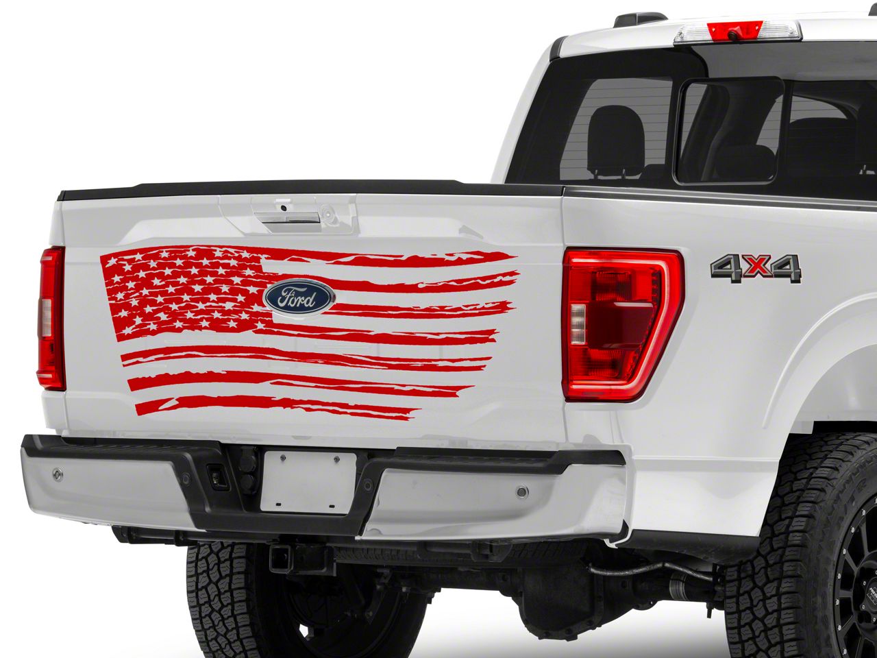 Patriotic Styling. Now you can add patriotic styling to the tailgate of your truck with this SEC10 Distressed Flag Decal. Featuring a distressed American Flag design, this Decal was designed to placed horizontally on your tailgate to proudly show off your patriotism to other drivers.