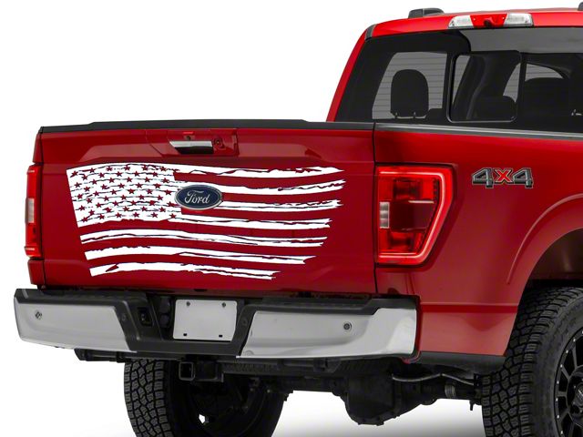 Patriotic Styling. Now you can add patriotic styling to the tailgate of your truck with this SEC10 Distressed Flag Decal. Featuring a distressed American Flag design, this Decal was designed to placed horizontally on your tailgate to proudly show off your patriotism to other drivers.