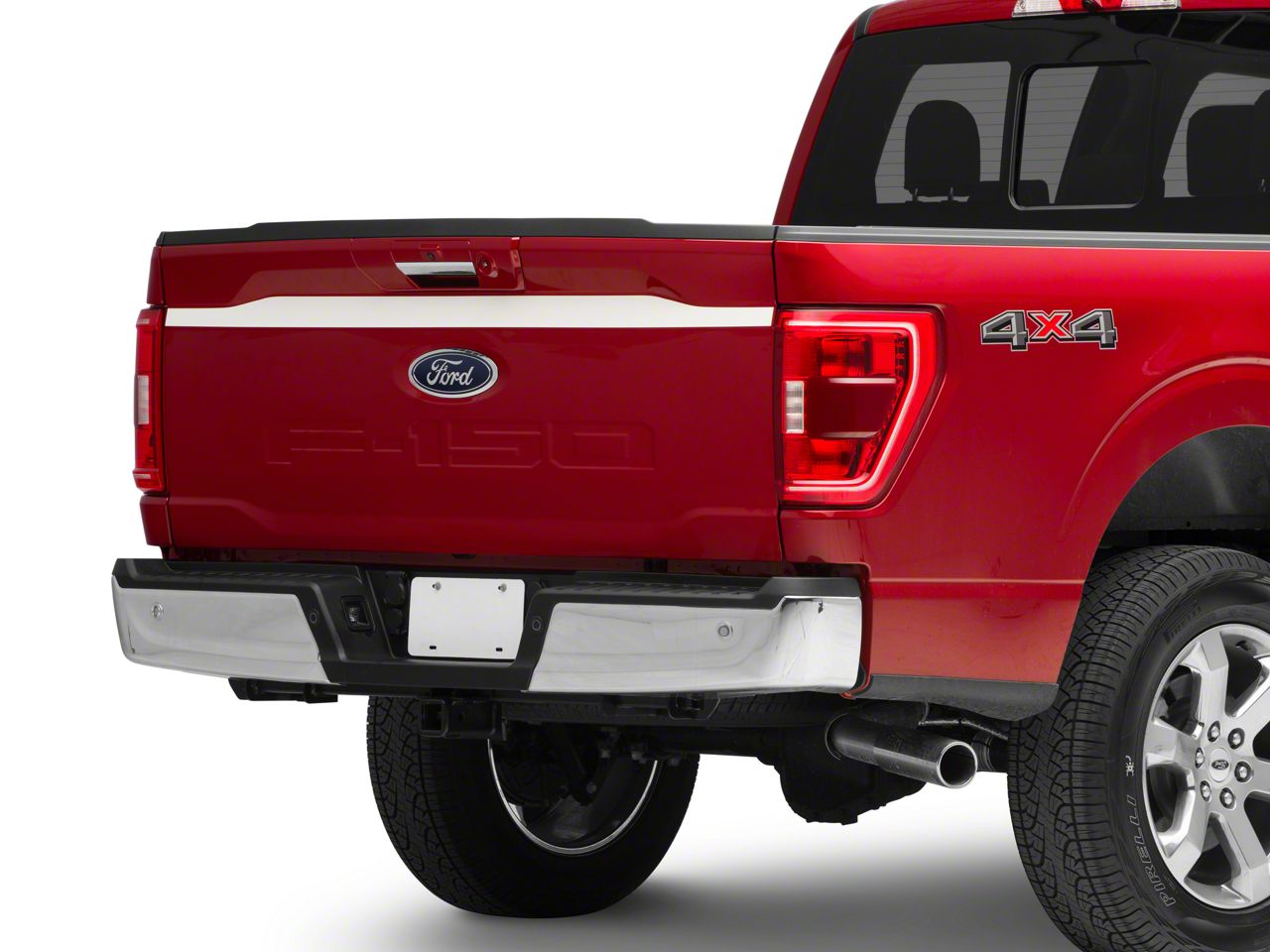 Styling Accent. This White Upper Tailgate Accent Decal is the ideal way to enhance the exterior appearance of your late model F-150. This SEC10 Decal was specifically designed to accent the sculpted upper lines of your tailgate. As an added bonus this Decal is an excellent way to cover up any existing scuffs or scratches you may have earned on the road or out on the trail.
