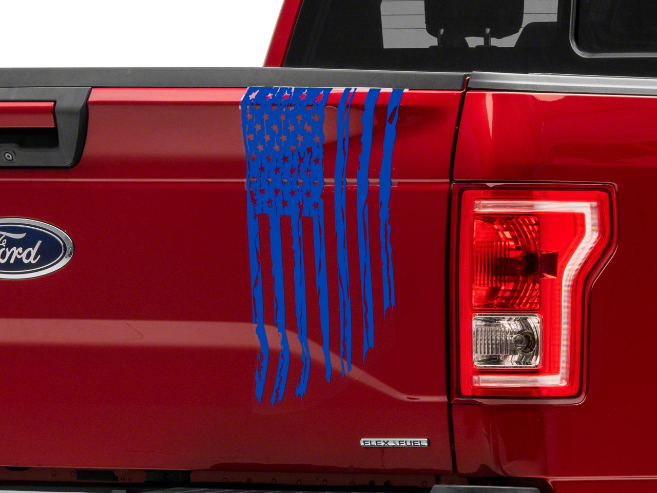Application. This SEC10 Vertical Tailgate Distressed Flag Decal; Blue is designed to fit 1997-2026 Ford F-150 models. Sold individually.