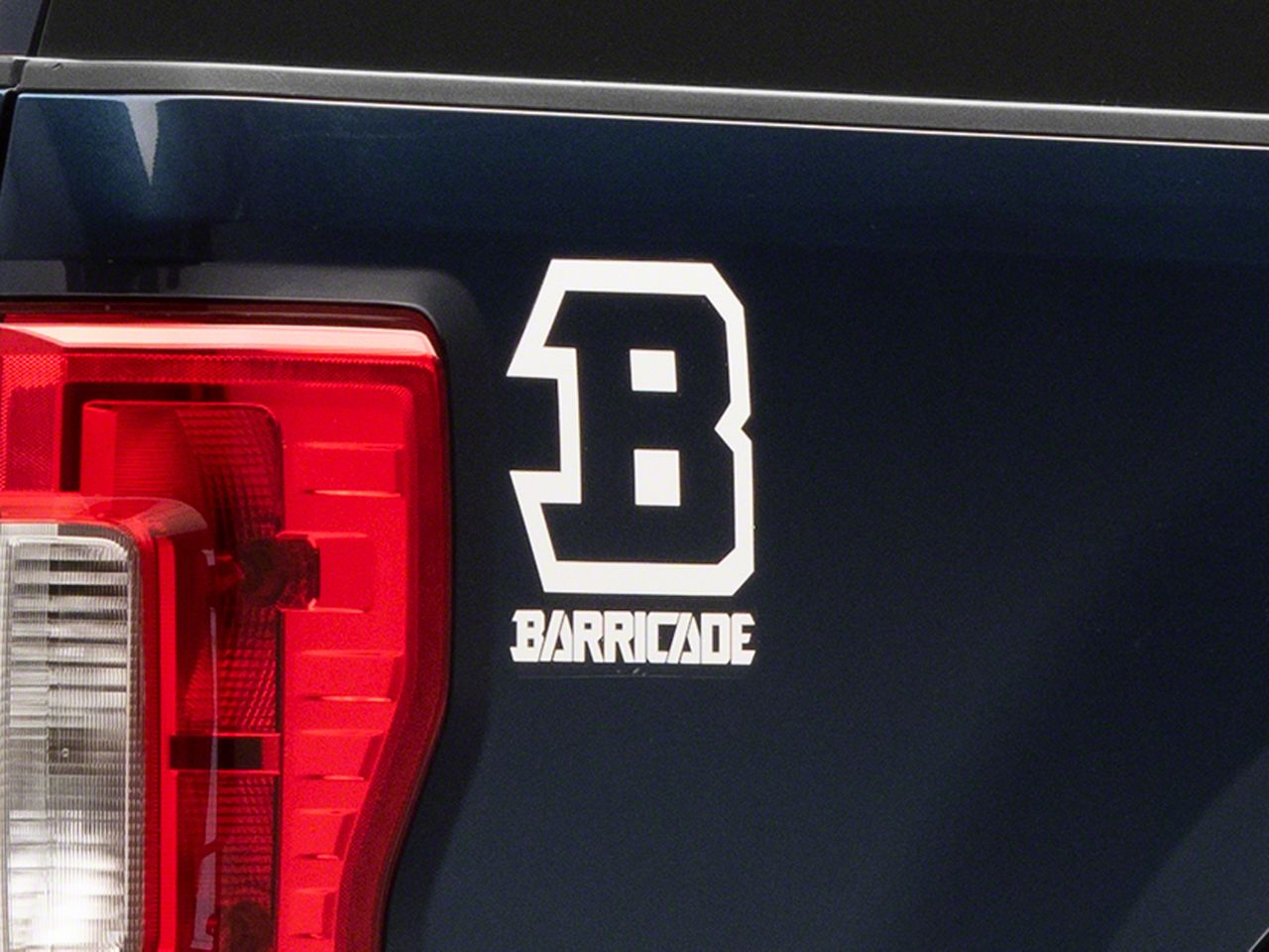 Barricade B-Block Decal. This great looking Barricade B-Block Decal is a simple and effective way to let everyone know exactly what parts you're running on your off-road rig. This Decal has a universal design, so it can be applied to any smooth flat surface and looks especially good in your rear/side windows or on your tailgate.