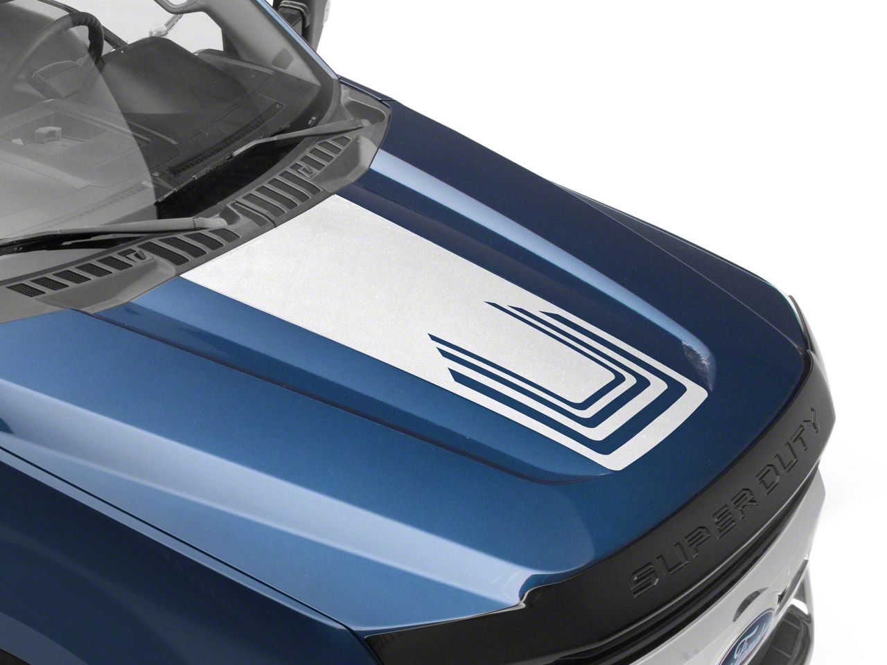 Center Hood Decal with Cutout. A great way to accentuate the clean lines of your F-250's factory hood is with a SEC10 Dashed Center Hood Decal. This Decal is a simple and inexpensive way to personalize the exterior styling of your truck.
