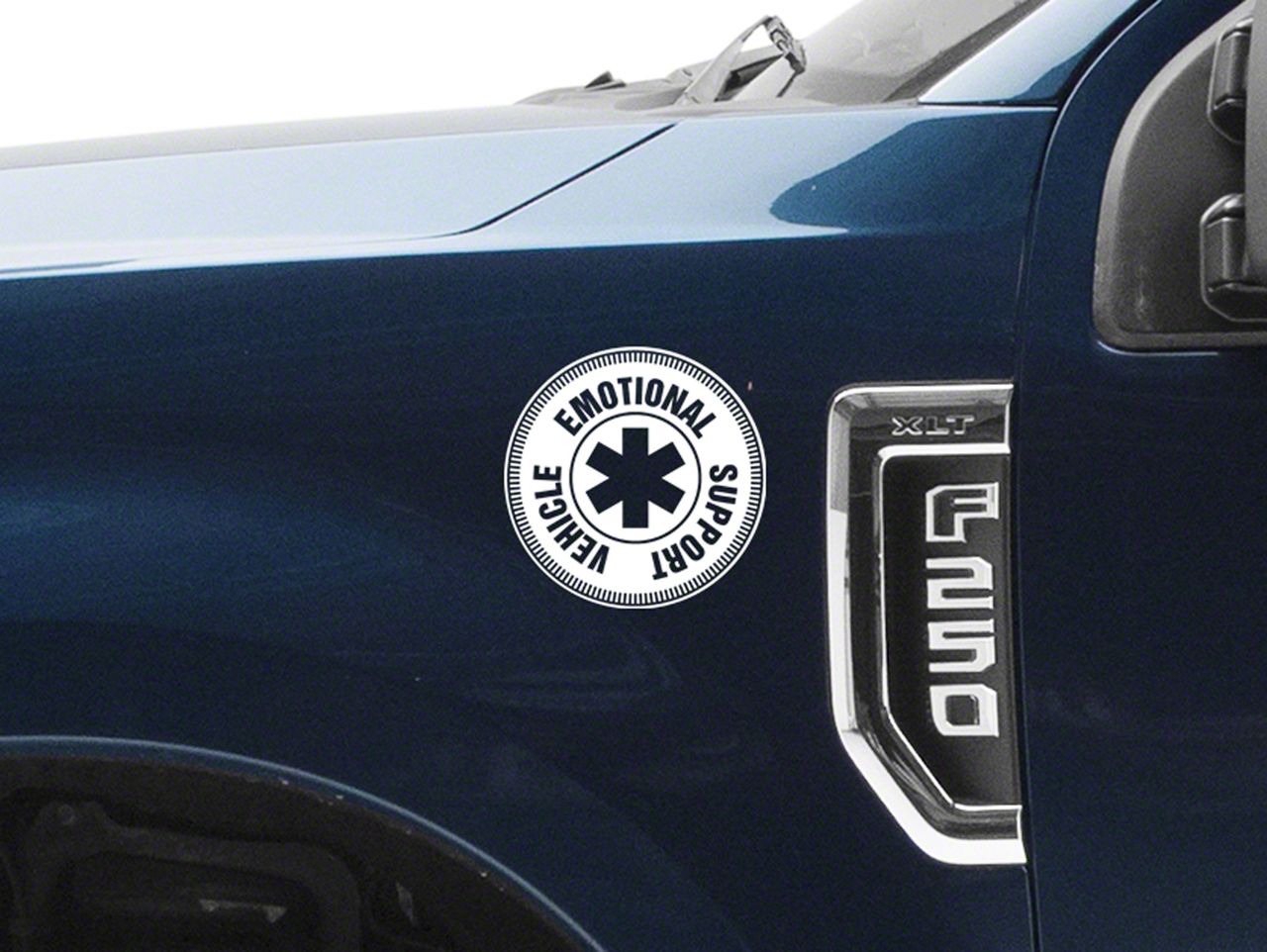 Emotional Support Vehicle Decal. A simple and amusing way to personalize the exterior styling of your vehicle is with a SEC10 Emotional Support Vehicle Decal. This Decal features a humorous take on the EMT (Emergency Medical Technician) logo design.