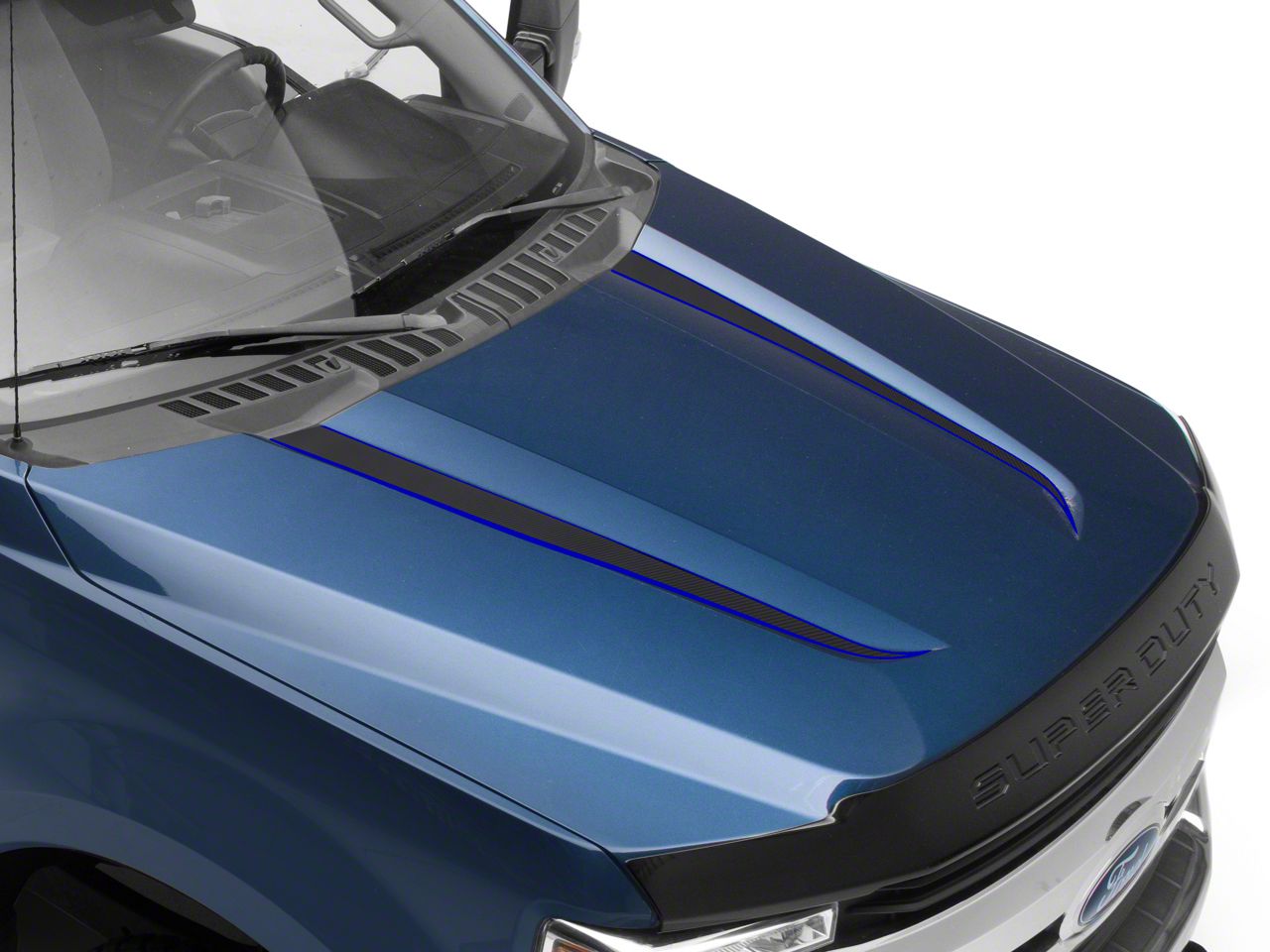 Application. These SEC10 Hood Spears; Carbon Blue Black are designed to fit 2017-2022 Ford F-250 Super Duty models. Driver and passenger side included.