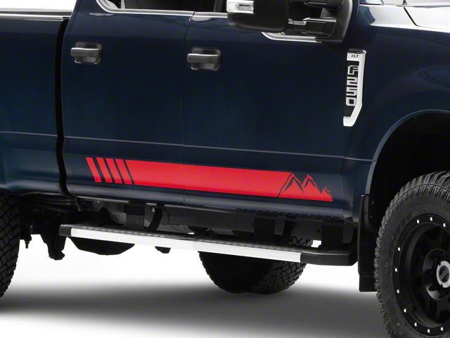 Application. These SEC10 Mountain Rocker Stripes; Red feature a universal designed and will fit all makes and models. Driver and passenger Side Included.