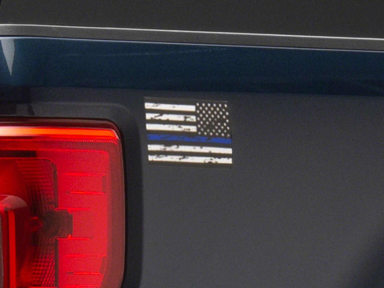 Patriotic Styling. A set of SEC10 Small Distressed Flag Decals are the perfect way to give your ride the exciting patriotic styling it's been lacking. Also notable is the blue line that serves as one of the flag's stripes to show support for the men and women of the United States law enforcement agency's.