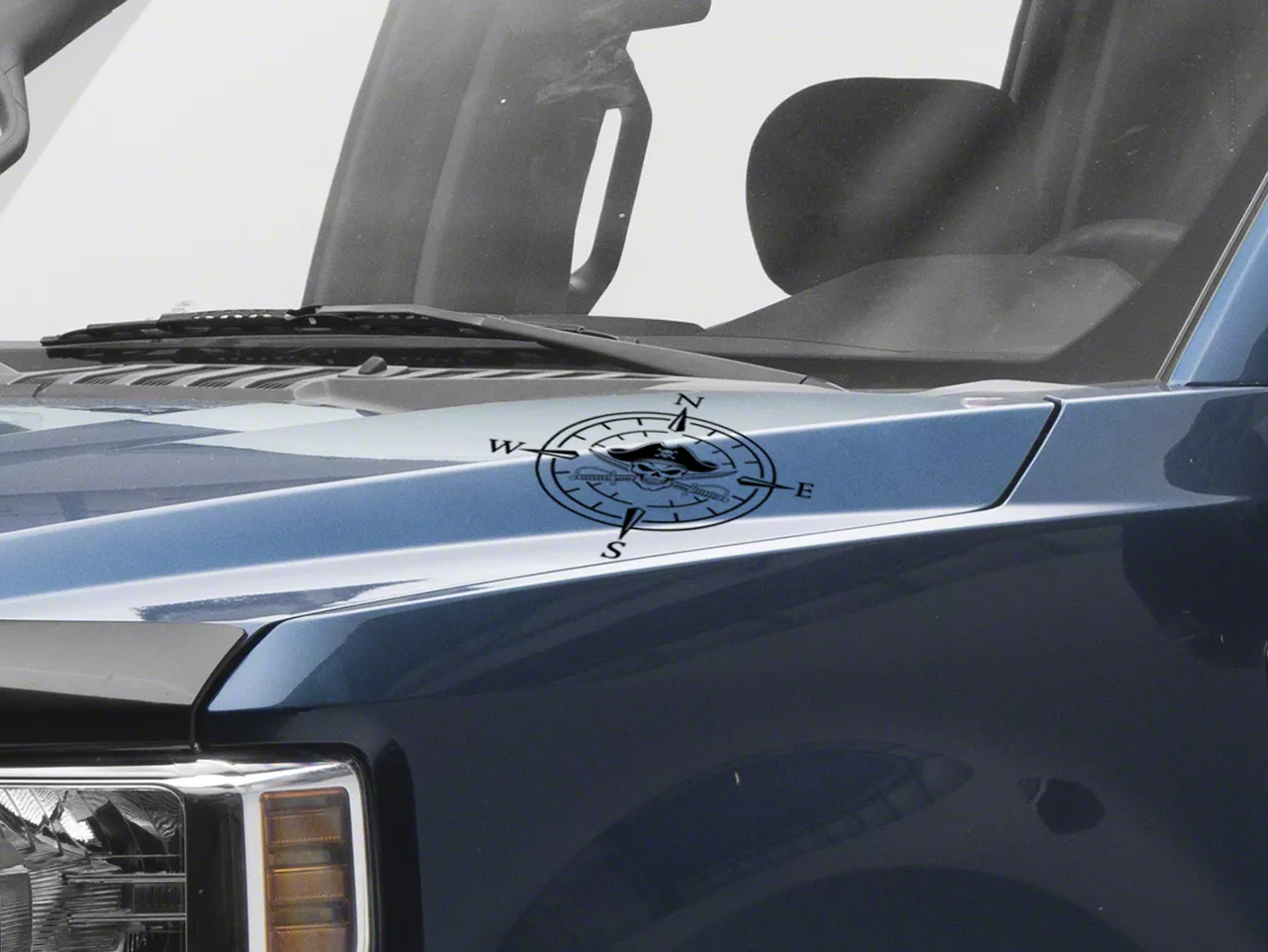 Pirate Compass Hood Decal. A simple and inexpensive way to personalize the exterior styling of your vehicle is with a Pirate Compass Hood Decal from SEC10. This Hood Decal features a pirate skull within a four point compass design.