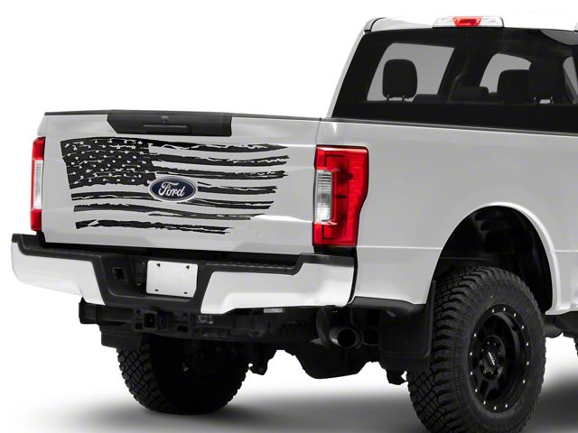 Patriotic Styling. Now you can add patriotic styling to the tailgate of your truck with this SEC10 Distressed Flag Decal. Featuring a distressed American Flag design, this Decal was designed to placed horizontally on your tailgate to proudly show off your patriotism to other drivers.