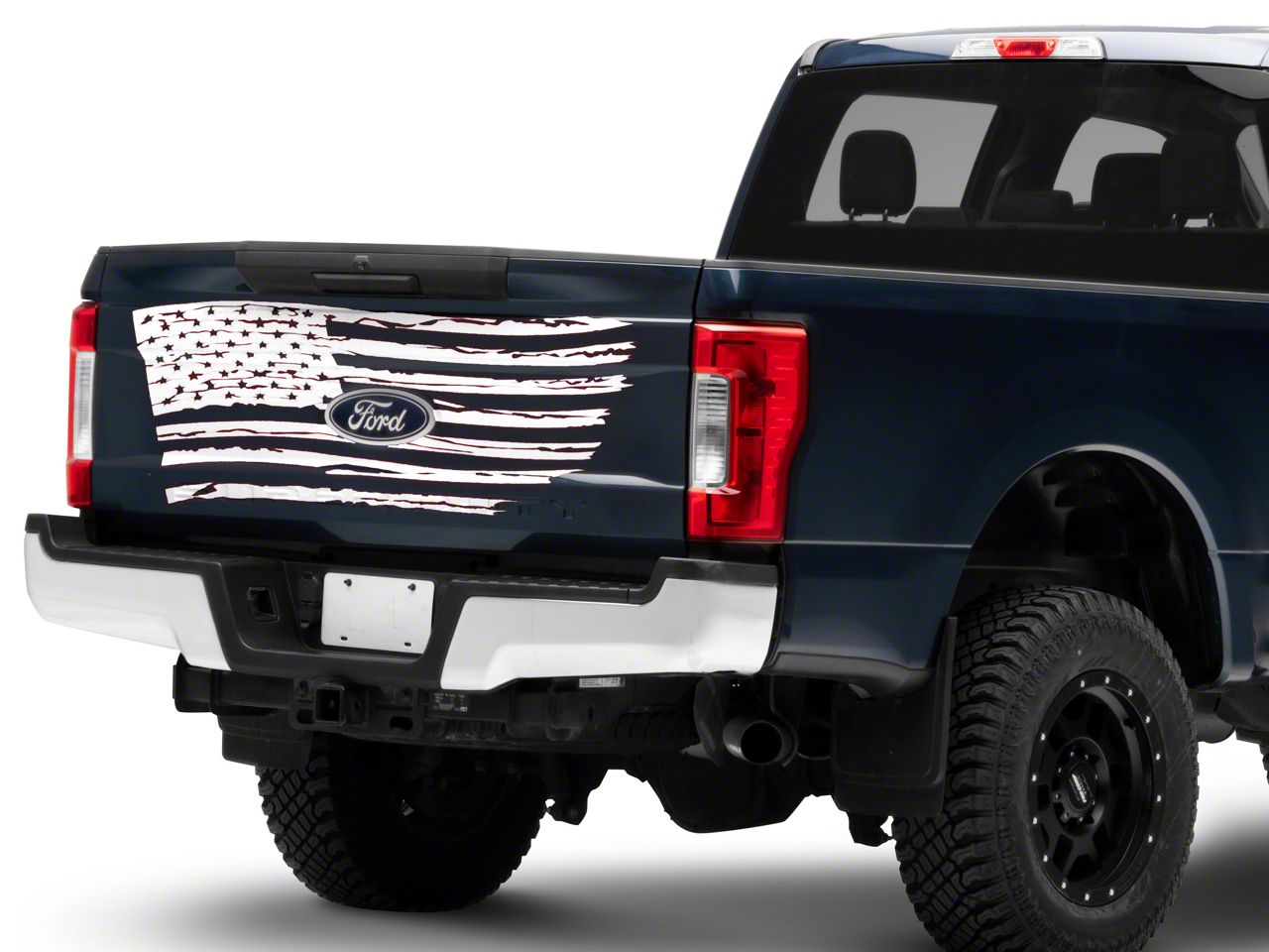 Patriotic Styling. Now you can add patriotic styling to the tailgate of your truck with this SEC10 Distressed Flag Decal. Featuring a distressed American Flag design, this Decal was designed to placed horizontally on your tailgate to proudly show off your patriotism to other drivers.