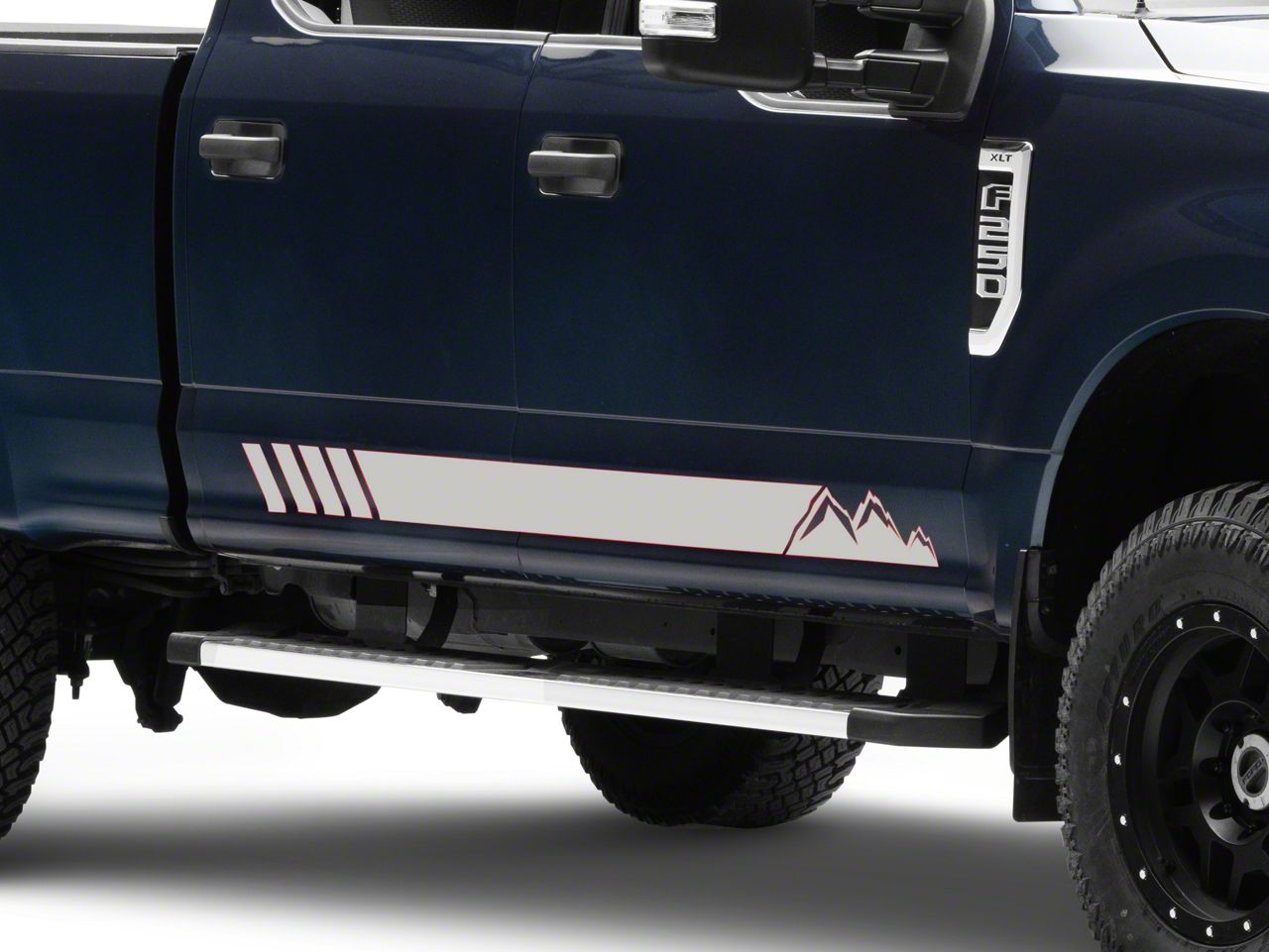 Mountain Range Rocker Stripes. A simple and inexpensive way to personalize the exterior styling of your ride is with a set of SEC10 Mountain Range Rocker Stripe Decals. These SEC10 Universal Rocker Stripe Decals feature a three peak mountain range design with a fading strobe tail. These SEC10 Mountain Rocker Stripes look great on all makes and models.