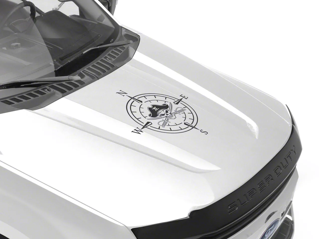 Pirate Compass Hood Decal. A simple and inexpensive way to personalize the exterior styling of your vehicle is with a Pirate Compass Hood Decal from SEC10. This Hood Decal features a pirate skull within a four point compass design.