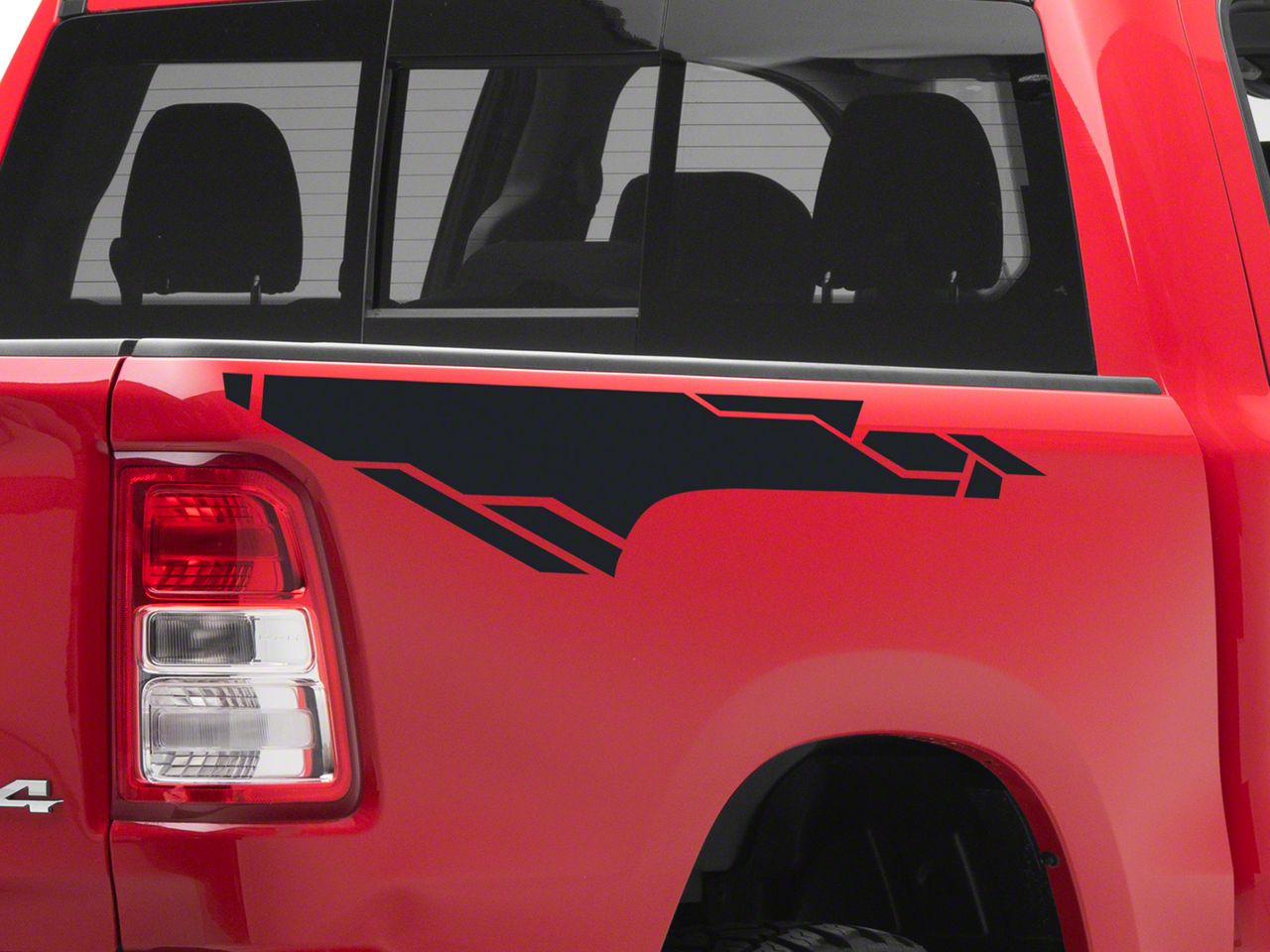 Bed Side Geometric Graphic Decals. A simple and inexpensive way to personalize the exterior styling of your RAM is with a set of SEC10 Bed Side Geometric Graphic Decals. These Decals feature a stylized geometric graphic design for sporty good looks.