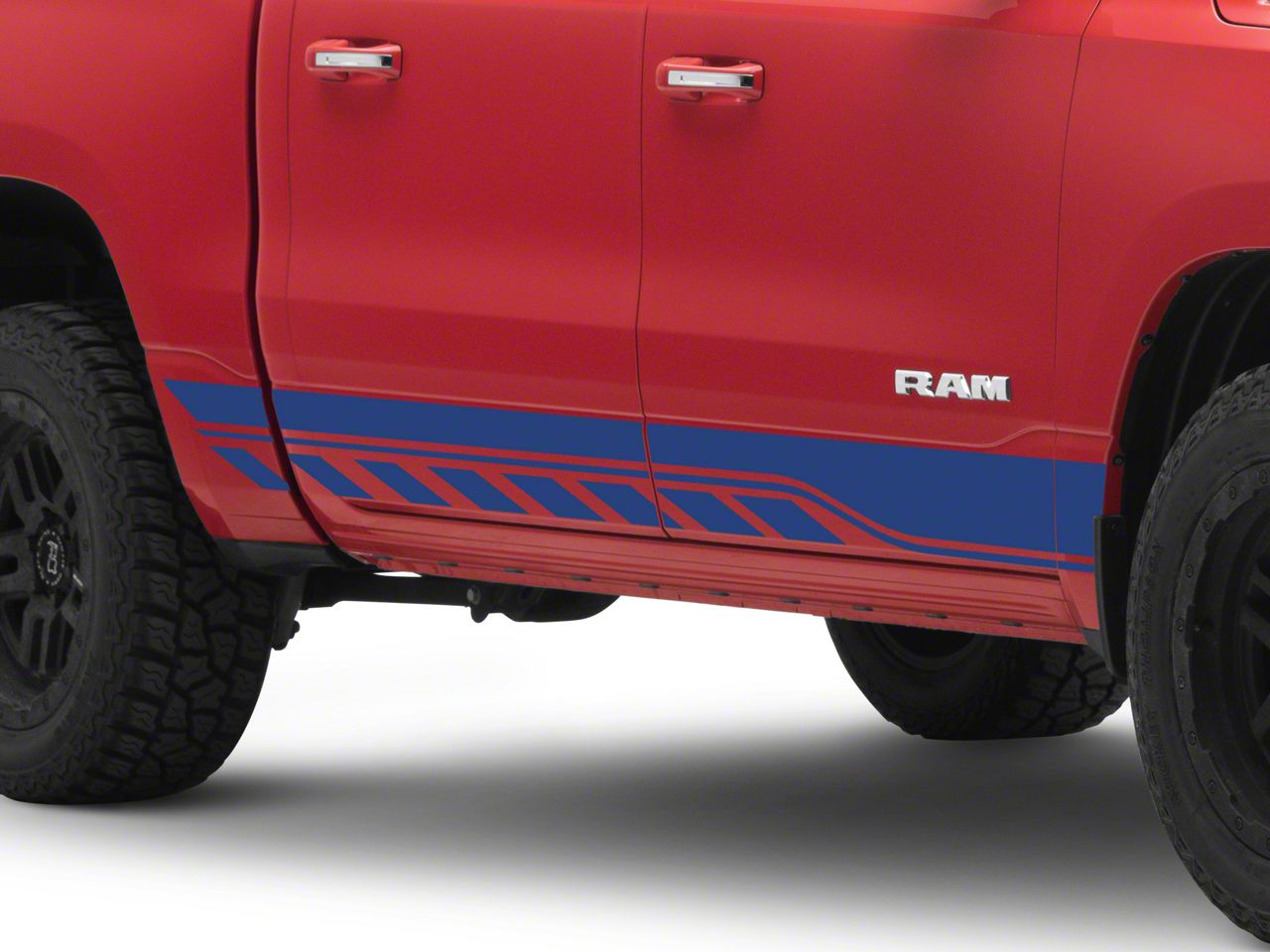 Application. These SEC10 Dash and Striped Rocker Stripes; Blue feature a universal design and will fit all makes and models. Driver and passenger side included.