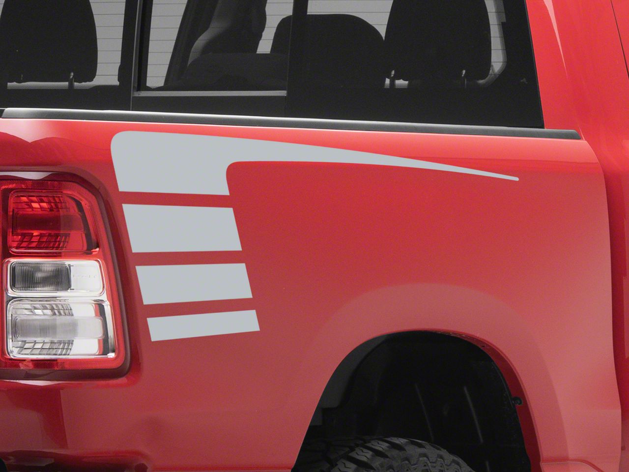 Application. These SEC10 Hockey Bed Graphic; Silver are designed to fit 1994-2026 RAM 1500 models. Driver and passenger side included.