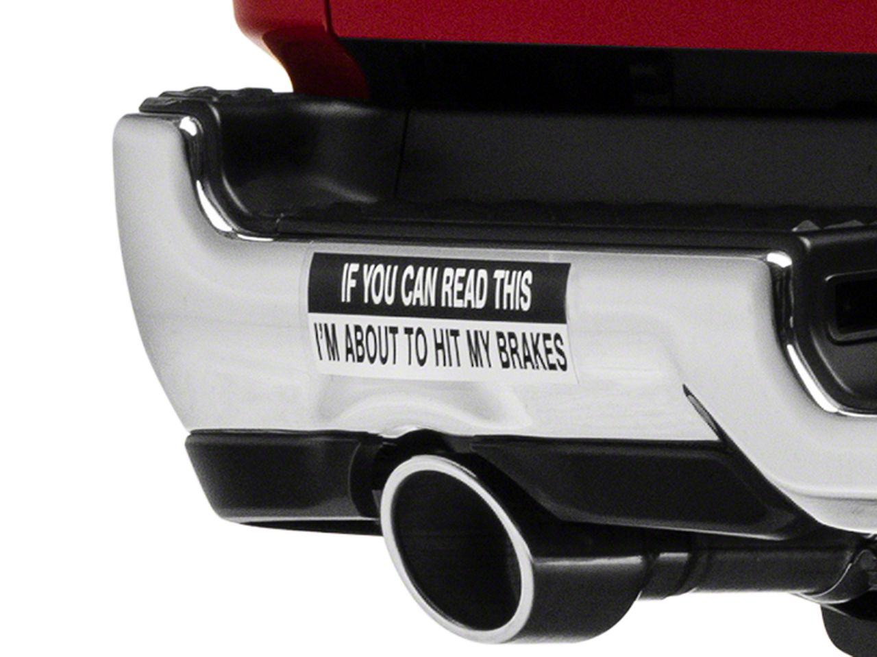 If You Can Read This. This humorous novelty decal reads "If You Can Read This, I'm About To Hit My Brakes" sending a message to all those tailgaters out on the road. This Decal can be applied to any smooth flat surface and looks especially good in your rear window or on your bumper or tailgate.
