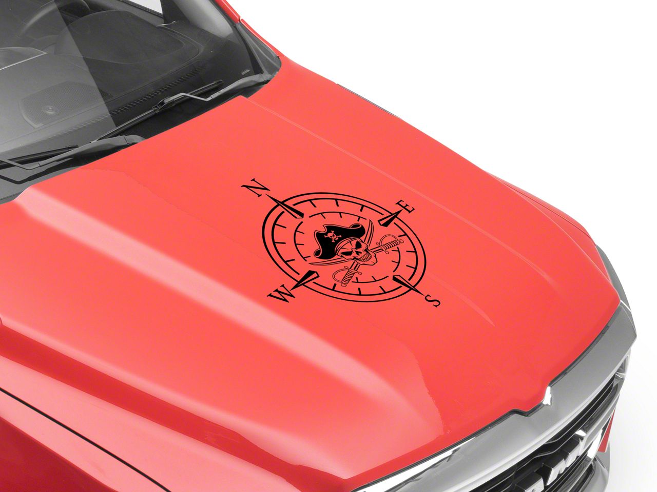 Pirate Compass Hood Decal. A simple and inexpensive way to personalize the exterior styling of your vehicle is with a Pirate Compass Hood Decal from SEC10. This Hood Decal features a pirate skull within a four point compass design.