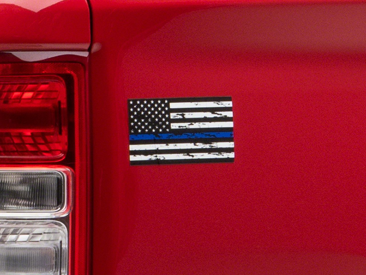 Patriotic Styling. A set of SEC10 Small Distressed Flag Decals are the perfect way to give your ride the exciting patriotic styling it's been lacking. Also notable is the blue line that serves as one of the flag's stripes to show support for the men and women of the United States law enforcement agency's.