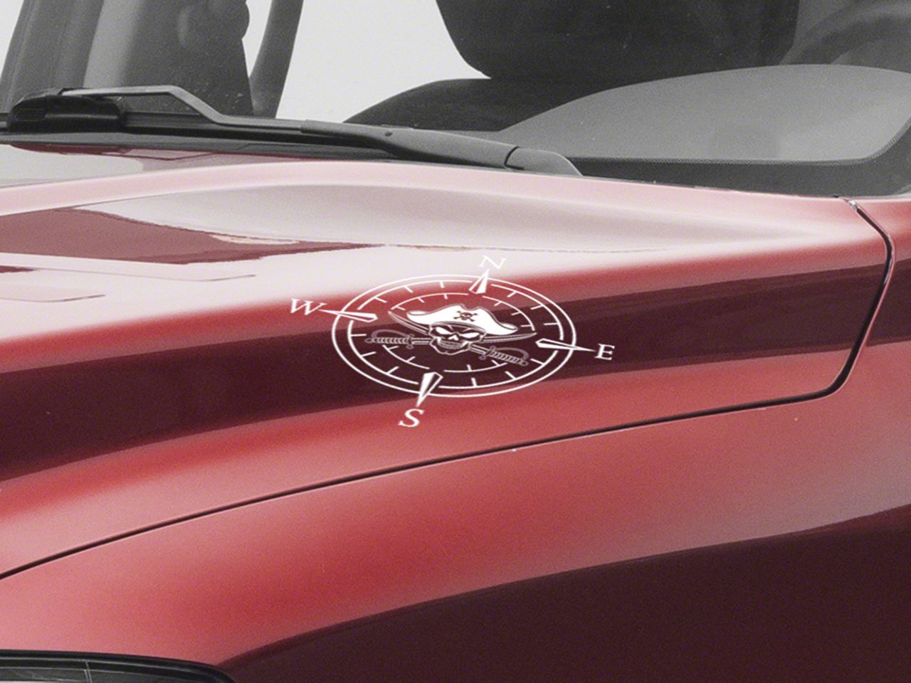 Pirate Compass Hood Decal. A simple and inexpensive way to personalize the exterior styling of your vehicle is with a Pirate Compass Hood Decal from SEC10. This Hood Decal features a pirate skull within a four point compass design.