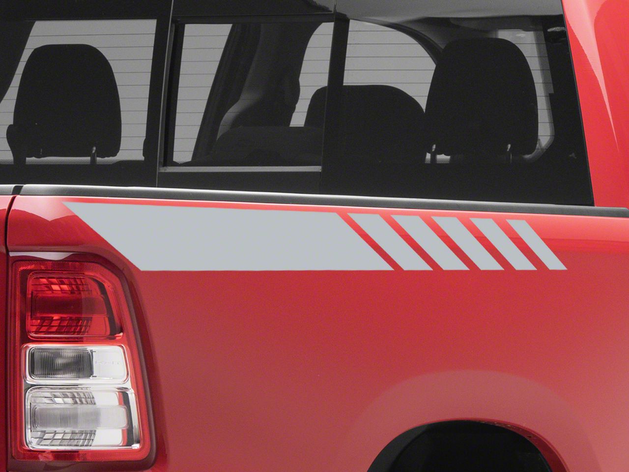 Application. These SEC10 Upper Bed Graphic; Silver are designed to fit 1994-2026 RAM 1500 models. Driver and passenger side included.