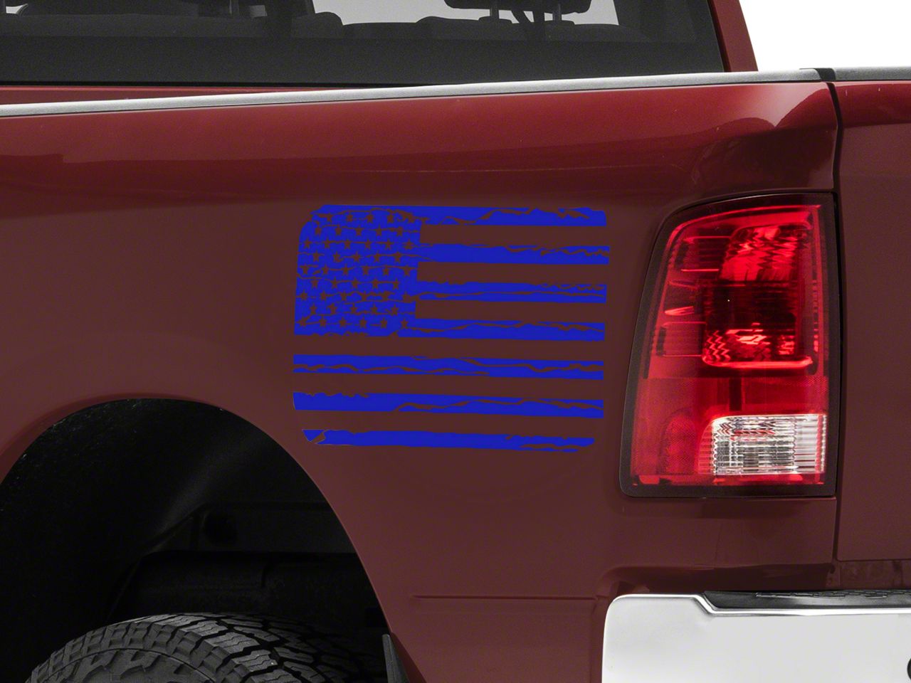 Patriotic Styling. Now you can add patriotic styling to your car, truck, tool box or any other clean smooth surface with this Blue SEC10 12x24 Flag Decal. Featuring a distressed American Flag design, this Decal will proudly show off your patriotism for the USA.