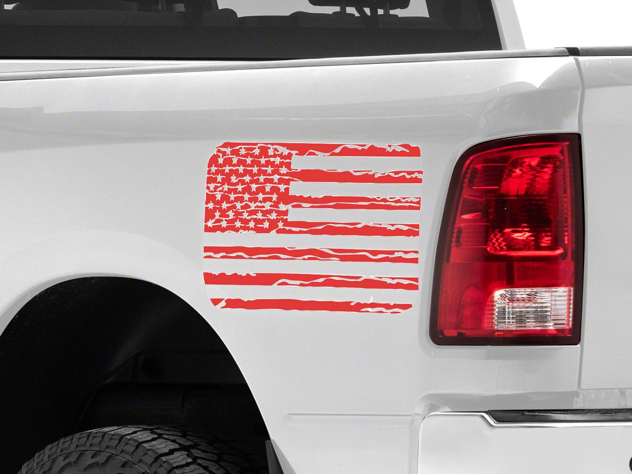 Patriotic Styling. Now you can add patriotic styling to your car, truck, tool box or any other clean smooth surface with this Red SEC10 12x24 Flag Decal. Featuring a distressed American Flag design, this Decal will proudly show off your patriotism for the USA.