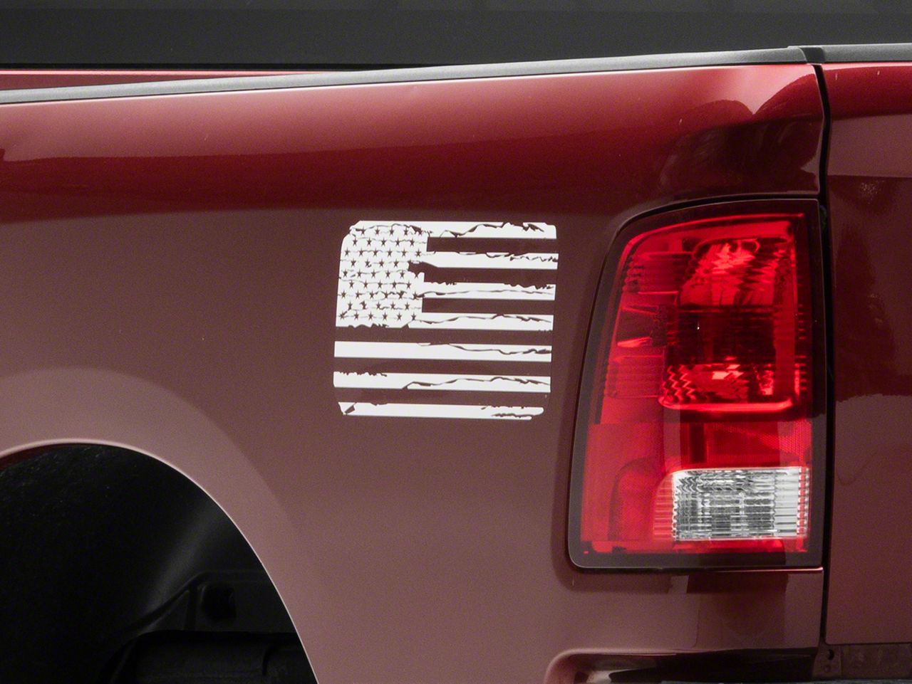 Patriotic Styling. Now you can add patriotic styling to your car, truck, tool box or any other clean smooth surface with this White SEC10 15x8 Flag Decal. Featuring a distressed American Flag design, this Decal will proudly show off your patriotism for the USA.