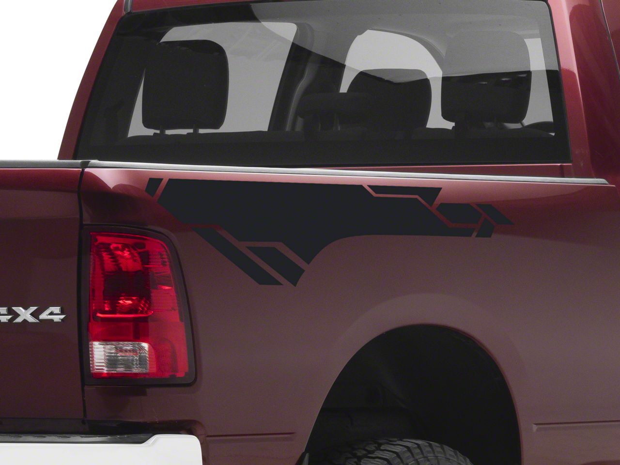 Bed Side Geometric Graphic Decals. A simple and inexpensive way to personalize the exterior styling of your RAM is with a set of SEC10 Bed Side Geometric Graphic Decals. These Decals feature a stylized geometric graphic design for sporty good looks.