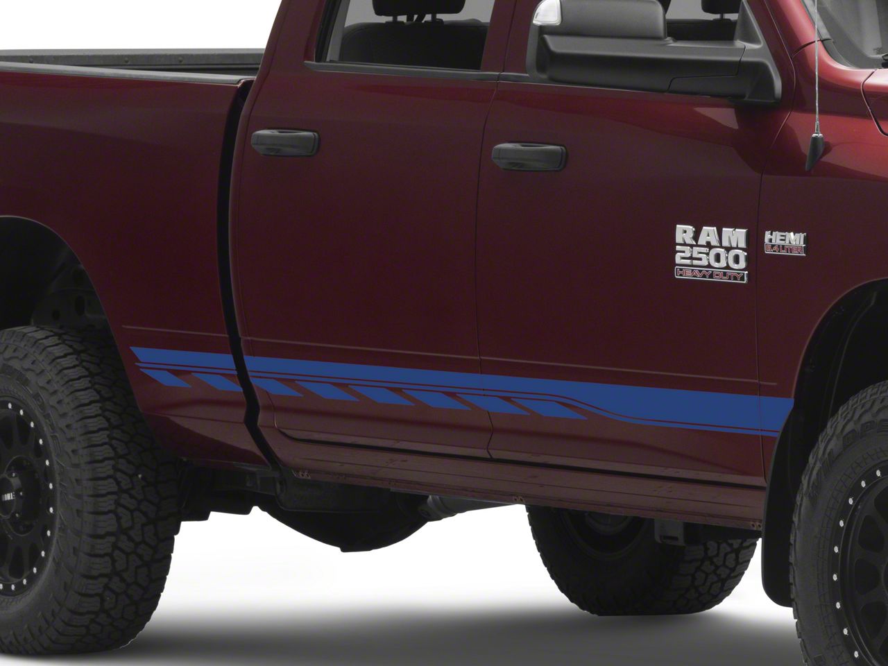 Application. These SEC10 Dash and Striped Rocker Stripes; Blue feature a universal design and will fit all makes and models. Driver and passenger side included.