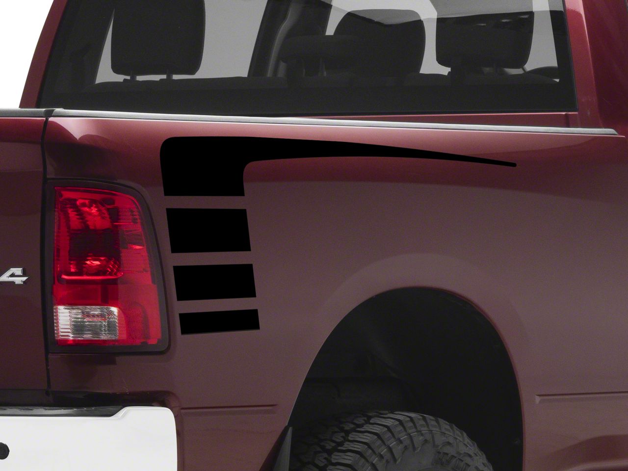 Bed Side Hockey Stripe Decals. A simple and inexpensive way to personalize the exterior styling of your RAM is with a set of SEC10 Bed Side Hockey Stripe Decals. These Decals feature a strobed hockey stick graphic design for sporty good looks.