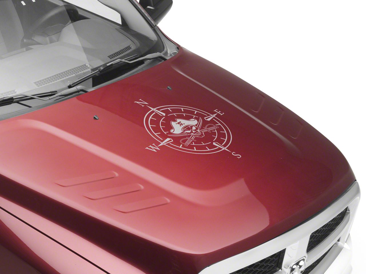 Pirate Compass Hood Decal. A simple and inexpensive way to personalize the exterior styling of your vehicle is with a Pirate Compass Hood Decal from SEC10. This Hood Decal features a pirate skull within a four point compass design.