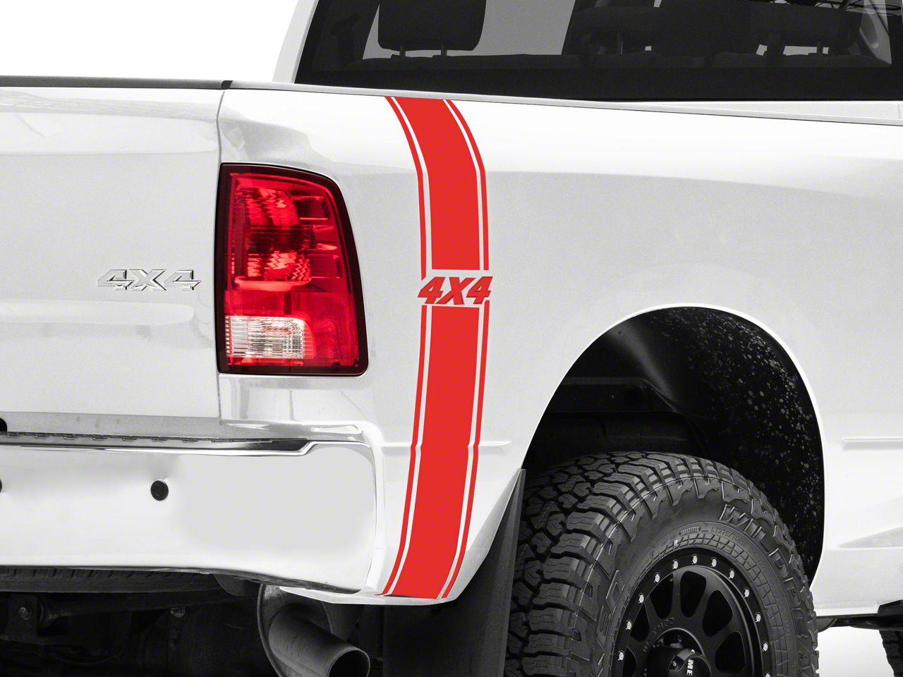 Vertical Tail Stripes. Add exciting exterior styling to your RAM with these rear Vertical Tail Stripe Decals that feature 4x4 text. These SEC10 Vertical Tail Stripes are a great way to give your RAM a bolder, sportier appearance that looks great both on and off-road.