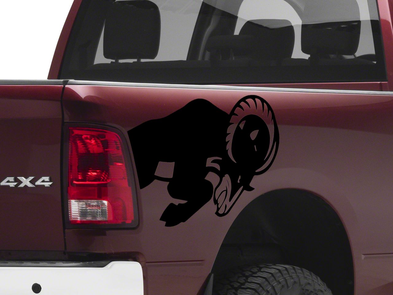 Bed Side Running Ram Head Decals. A simple and inexpensive way to personalize the exterior styling of your RAM is with a set of SEC10 Bed Side Running Ram Head Decals. These Decals feature the profile of a charging ram for rugged good looks.