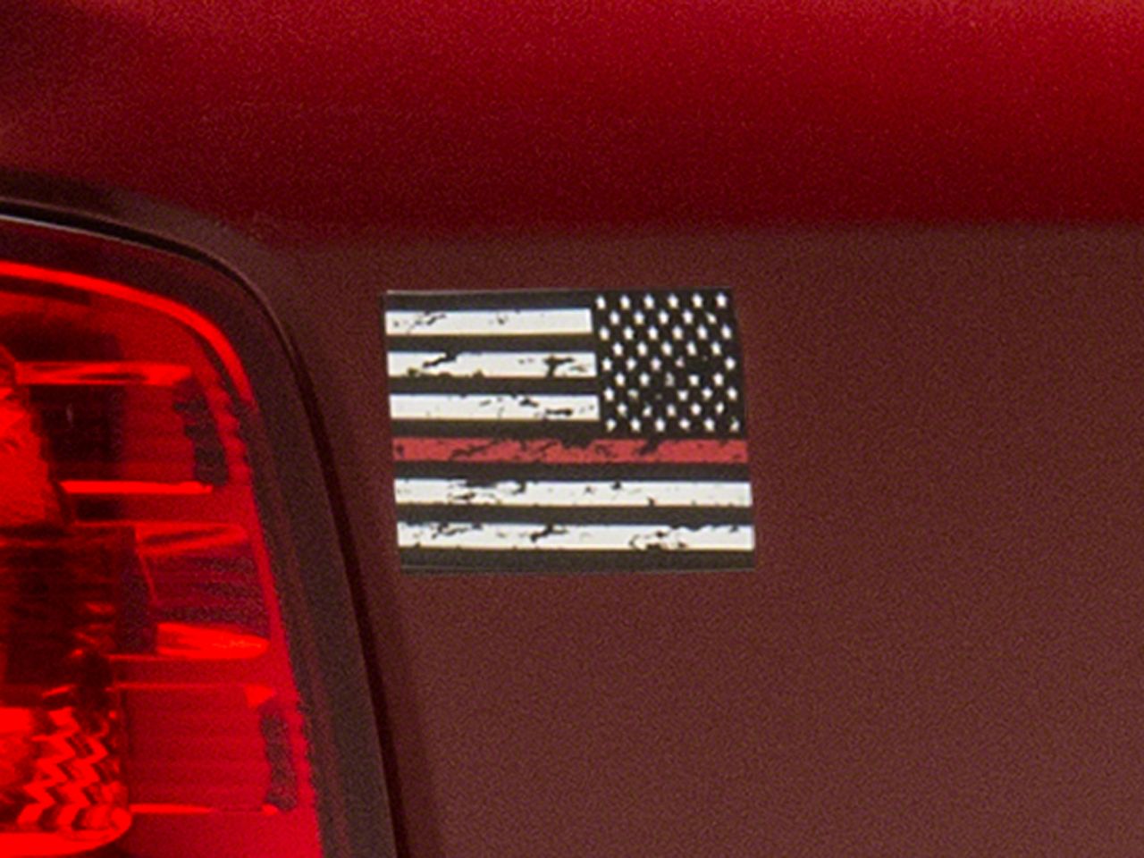 Patriotic Styling. A set of SEC10 Small Distressed Flag Decals are the perfect way to give your ride the exciting patriotic styling it's been lacking. Also notable is the red line that serves as one of the flag’s stripes to show support for all of America's Fire Fighters.