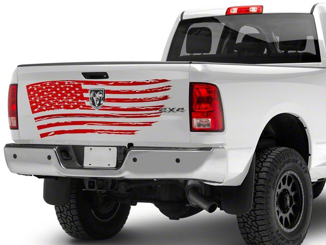 Patriotic Styling. Now you can add patriotic styling to the tailgate of your truck with this SEC10 Distressed Flag Decal. Featuring a distressed American Flag design, this Decal was designed to placed horizontally on your tailgate to proudly show off your patriotism to other drivers.