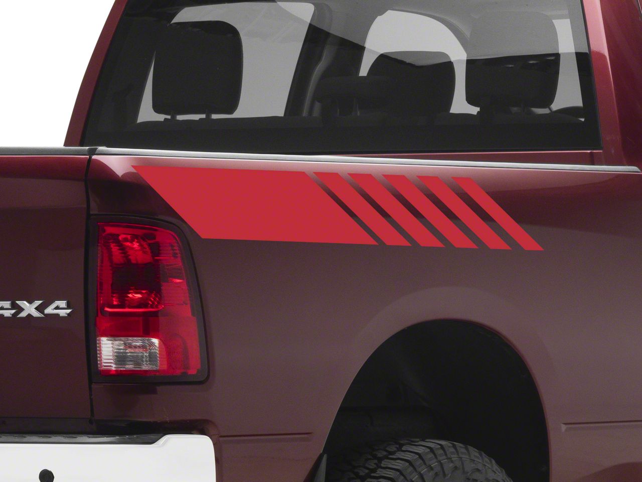 Upper Bed Side Strobe Graphic Decals. A simple and inexpensive way to personalize the exterior styling of your RAM is with a set of SEC10 Upper Bed Side Strobe Graphic Decals. These Decals feature a strobed graphic design for sporty good looks.