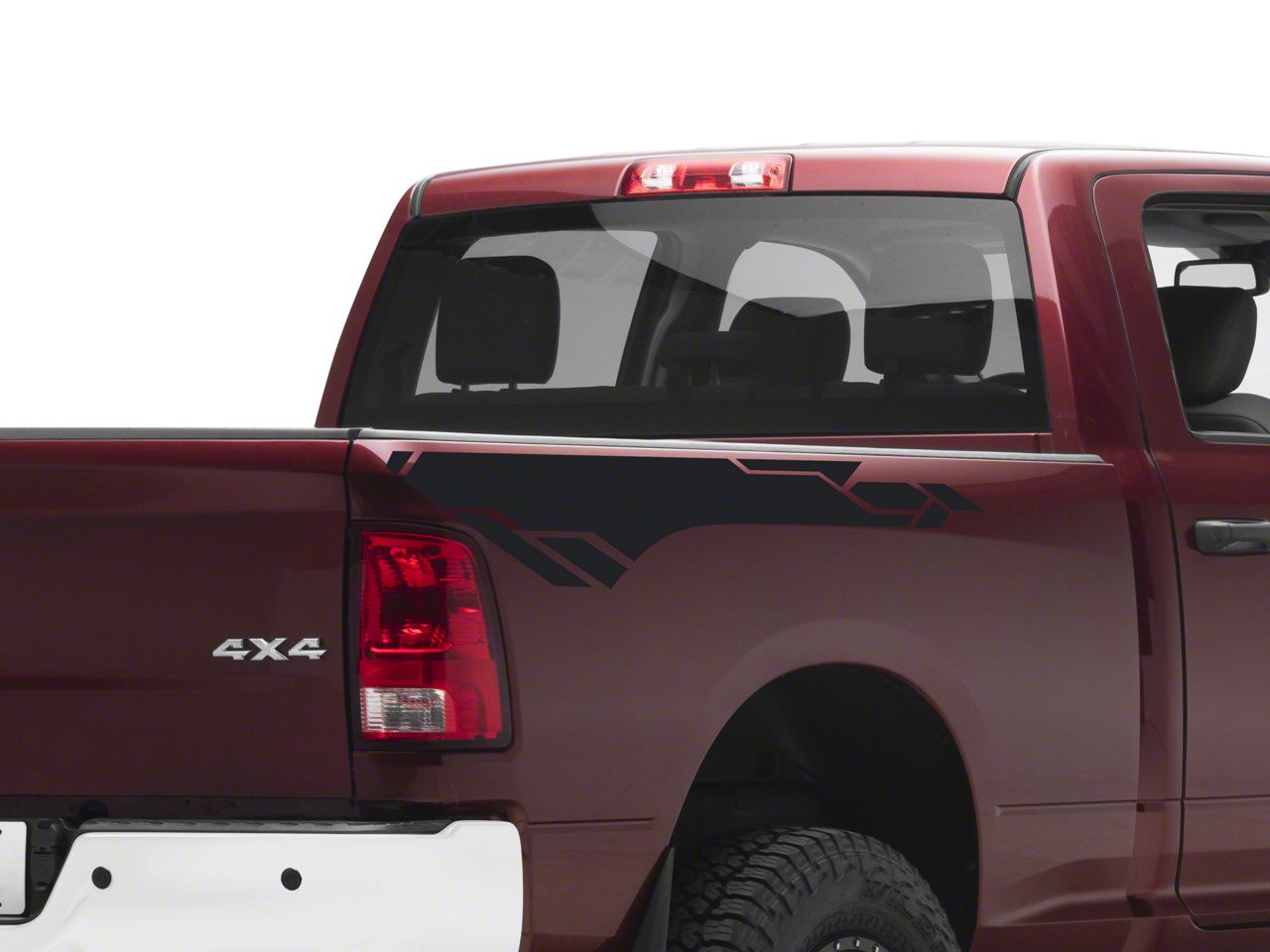 Bed Side Geometric Graphic Decals. A simple and inexpensive way to personalize the exterior styling of your RAM is with a set of SEC10 Bed Side Geometric Graphic Decals. These Decals feature a stylized geometric graphic design for sporty good looks.