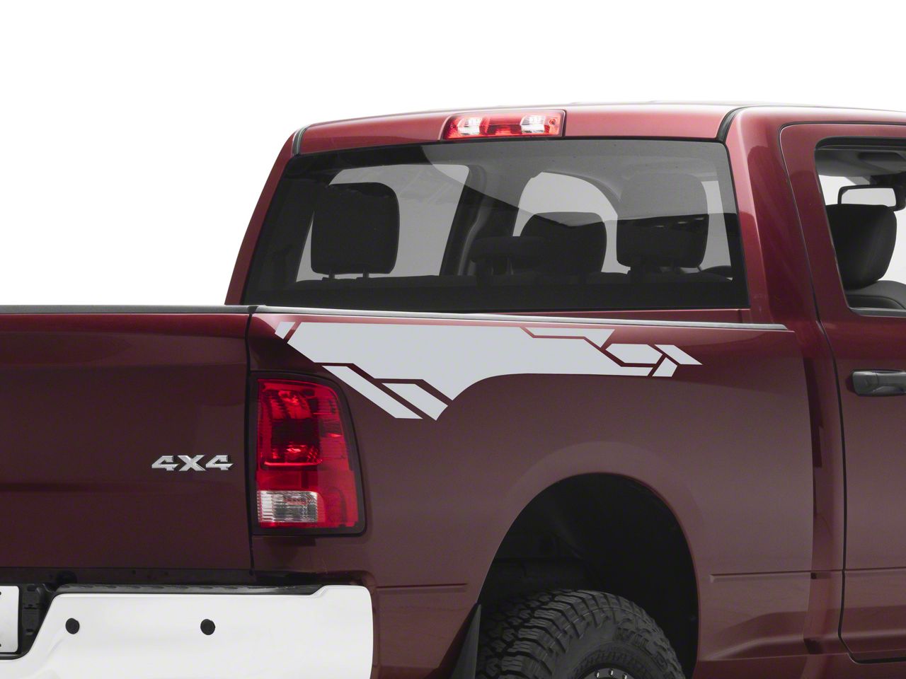 Bed Side Geometric Graphic Decals. A simple and inexpensive way to personalize the exterior styling of your RAM is with a set of SEC10 Bed Side Geometric Graphic Decals. These Decals feature a stylized geometric graphic design for sporty good looks.