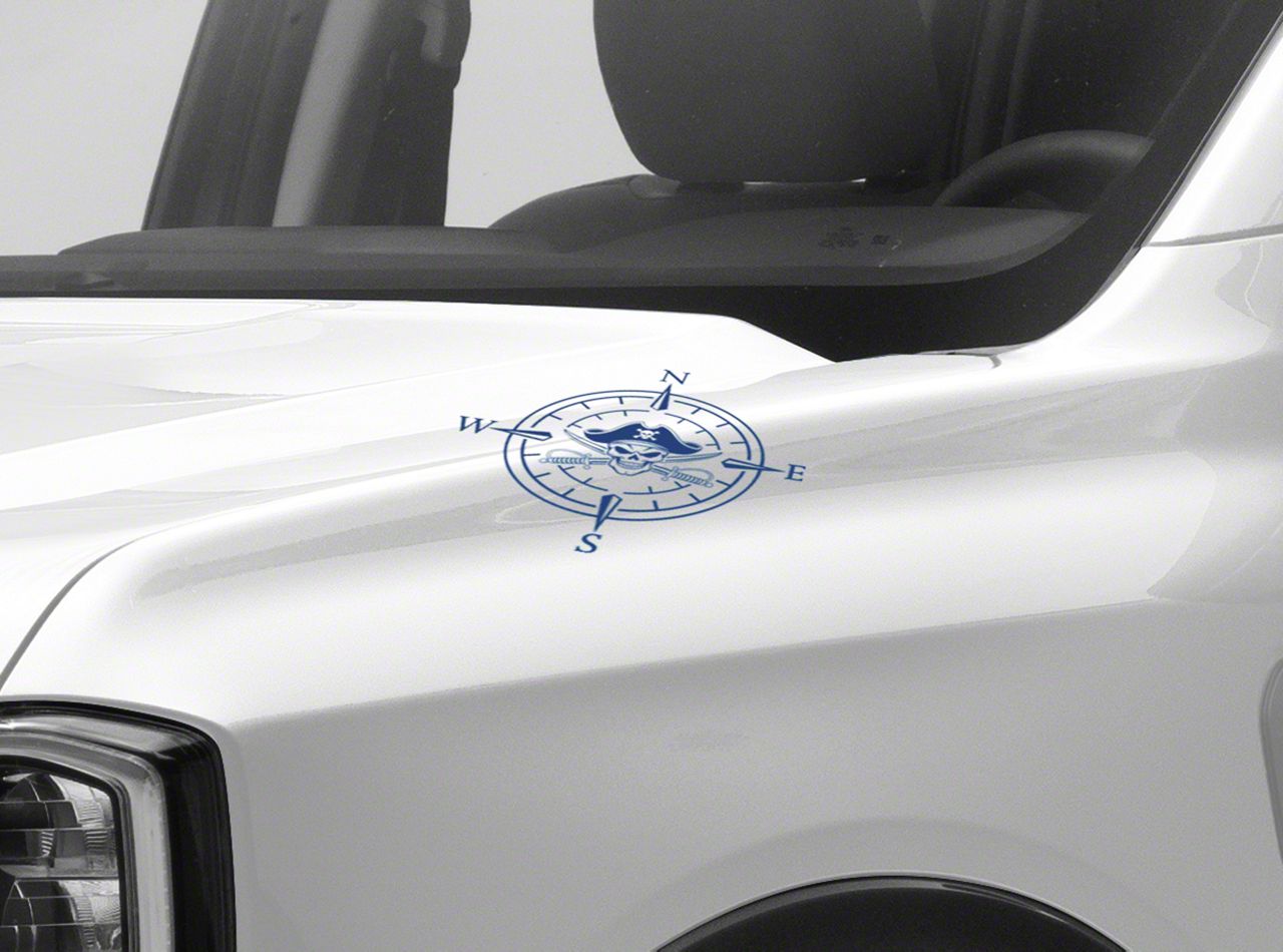 Pirate Compass Hood Decal. A simple and inexpensive way to personalize the exterior styling of your vehicle is with a Pirate Compass Hood Decal from SEC10. This Hood Decal features a pirate skull within a four point compass design.