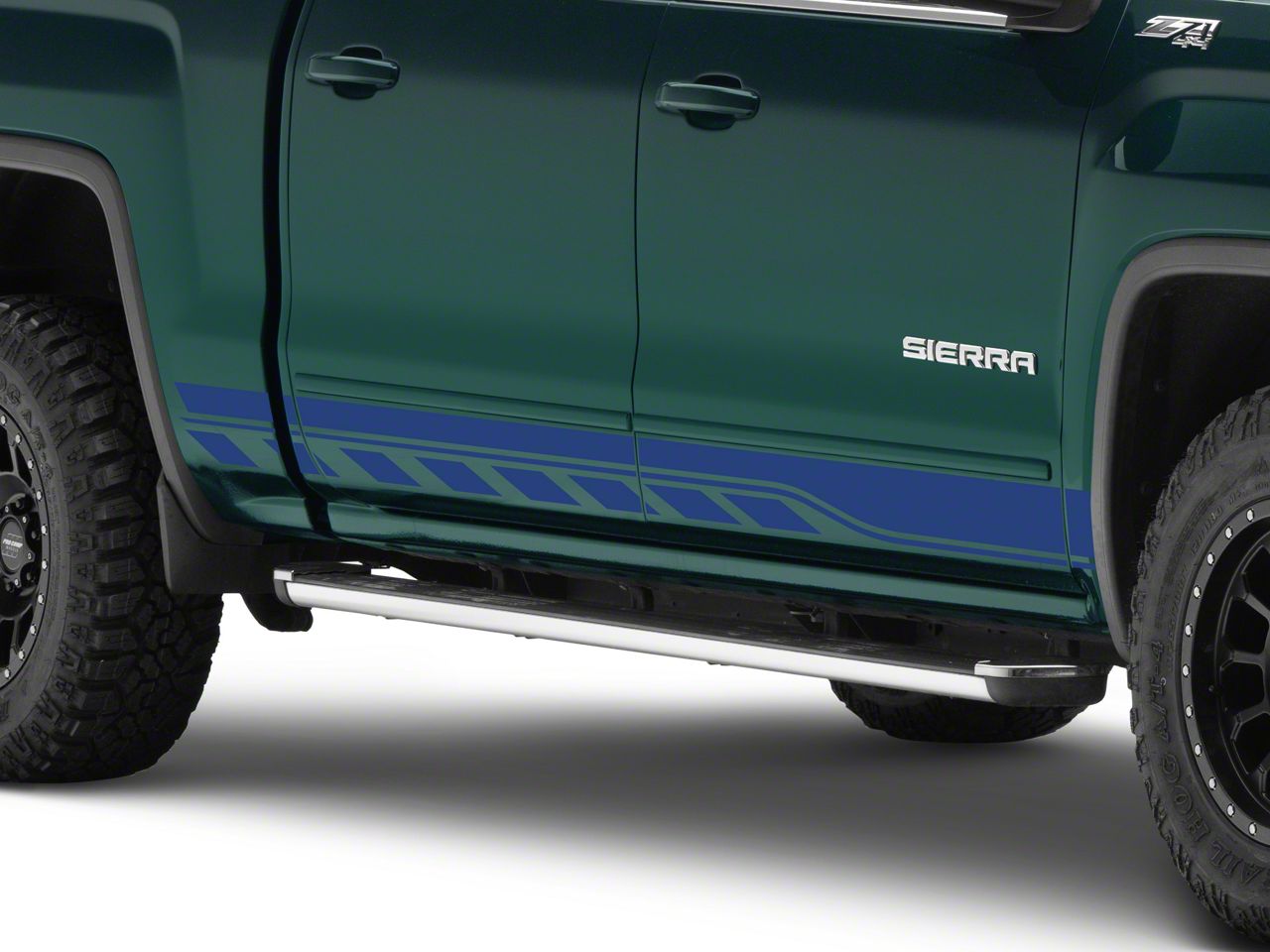 Application. These SEC10 Dash and Striped Rocker Stripes; Bluefeature a universal design and will fit most make and models. Driver and passenger side included.